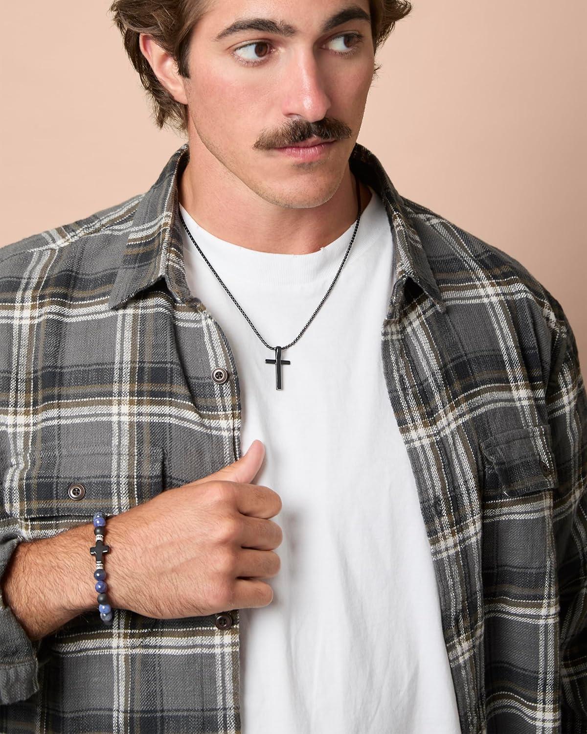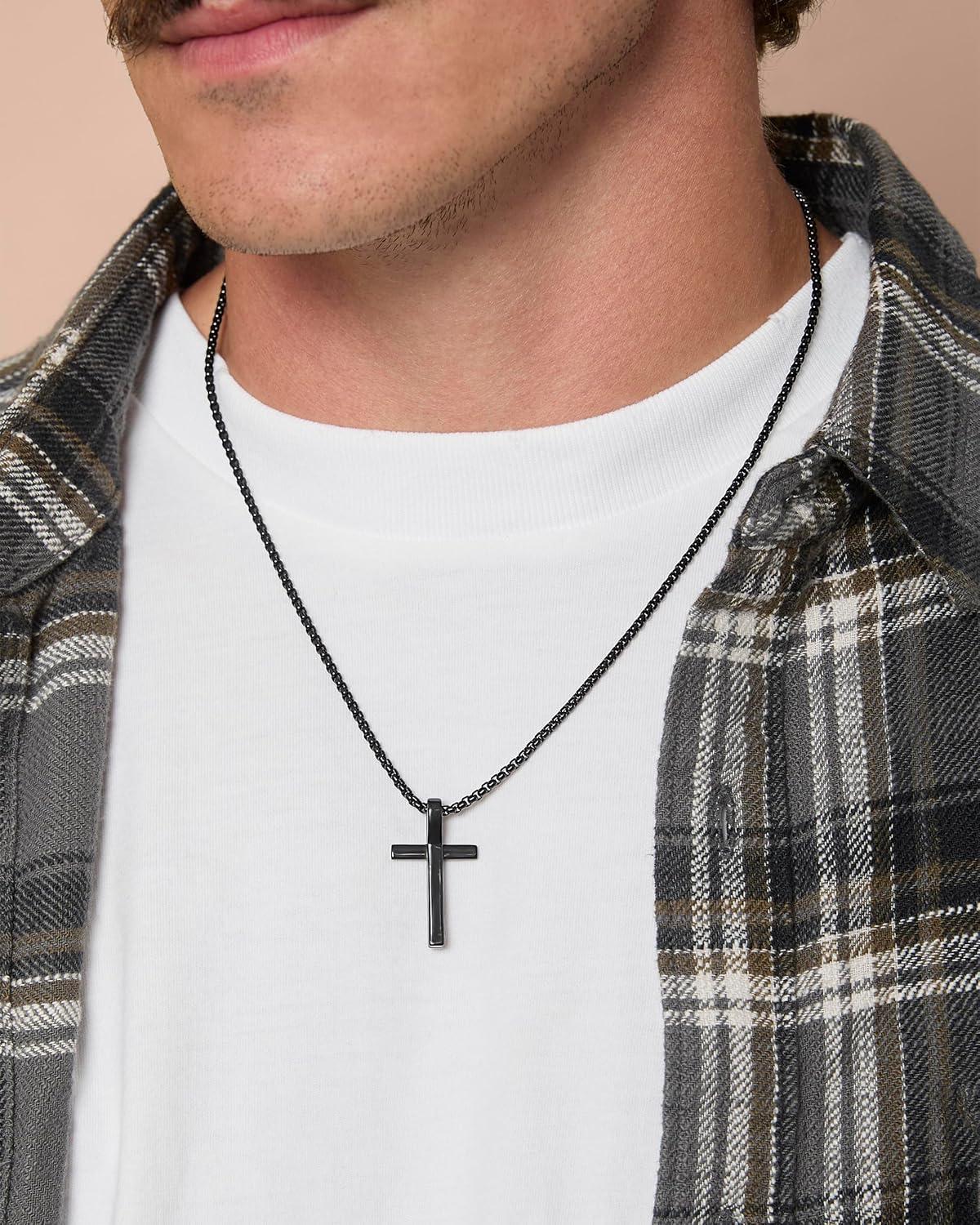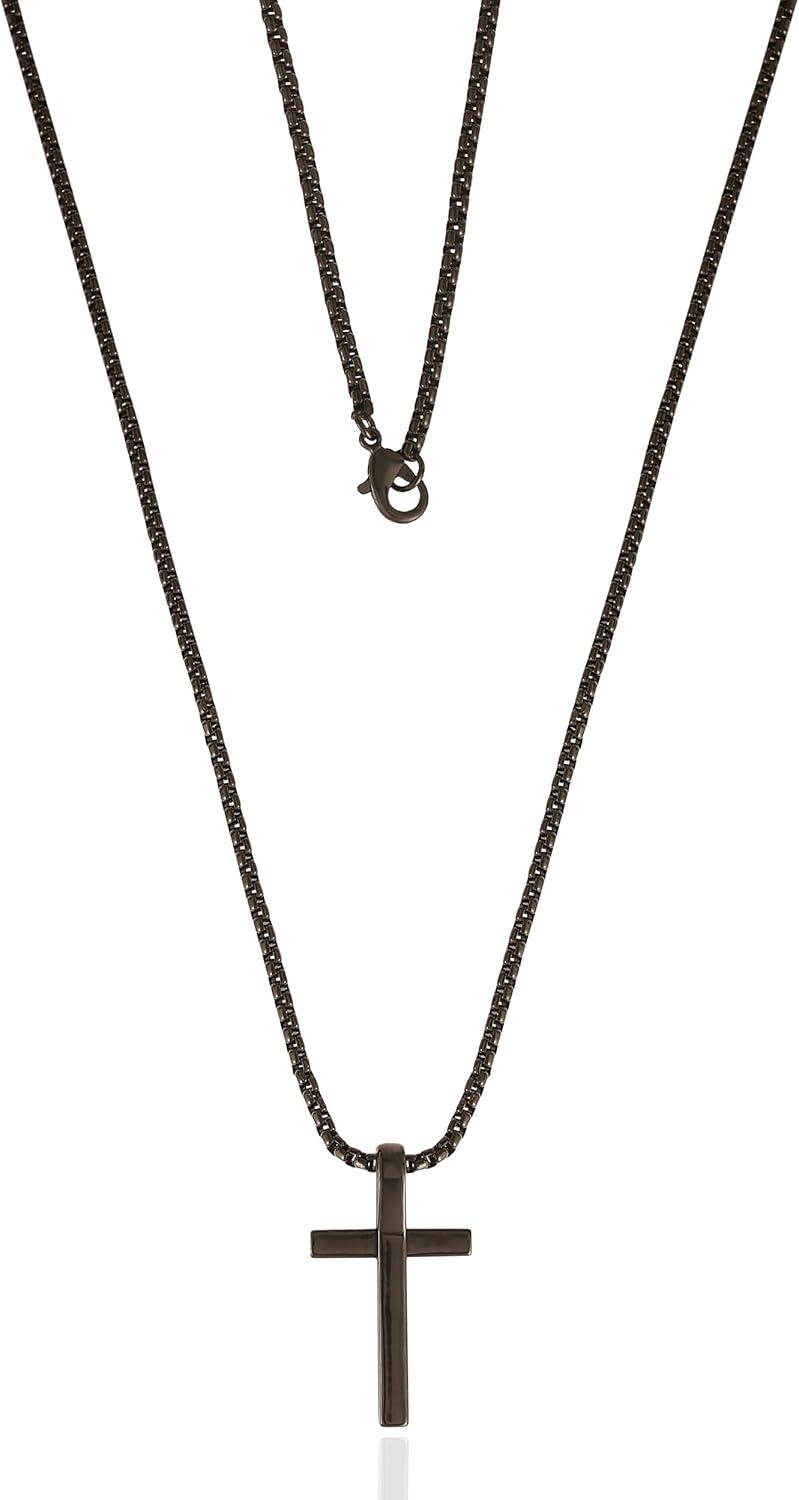 Lucky Brand Mens Black Cross Pendant Necklace, 22″” Black Onyx-Plated Cross Necklace for Men, Cross Jewelry