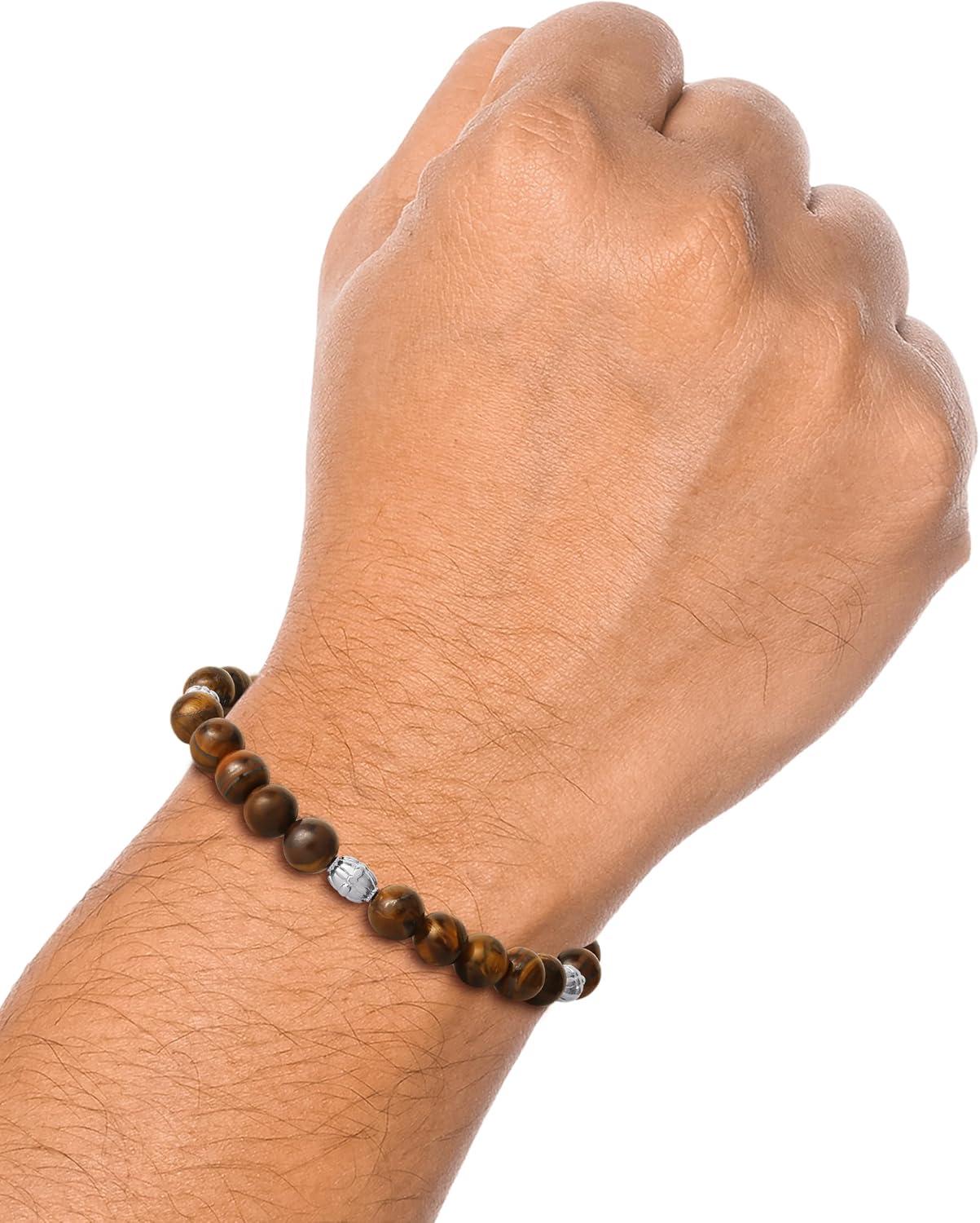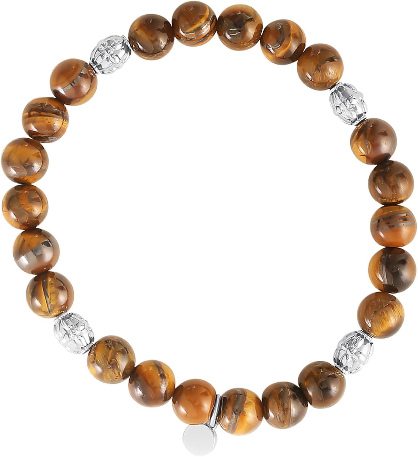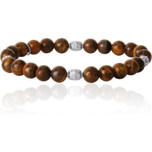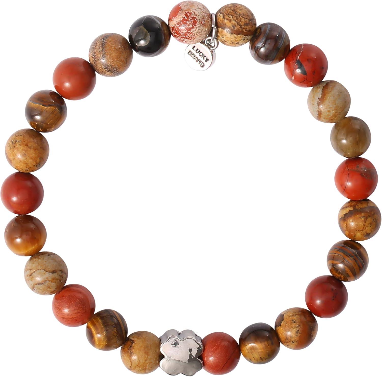 Lucky Brand Tiger Eye Bracelet for Men, Silver Flash-Plated Brass and Tiger’s Eye Bead Bracelet, Stretch Beaded Bracelet