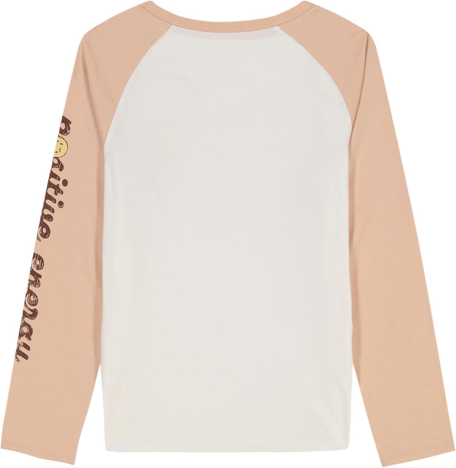 Lucky Brand Girls’ Long Sleeve Graphic T-Shirt, Tagless Cotton Tee with Fun Designs(Cameo Rose Positivity)