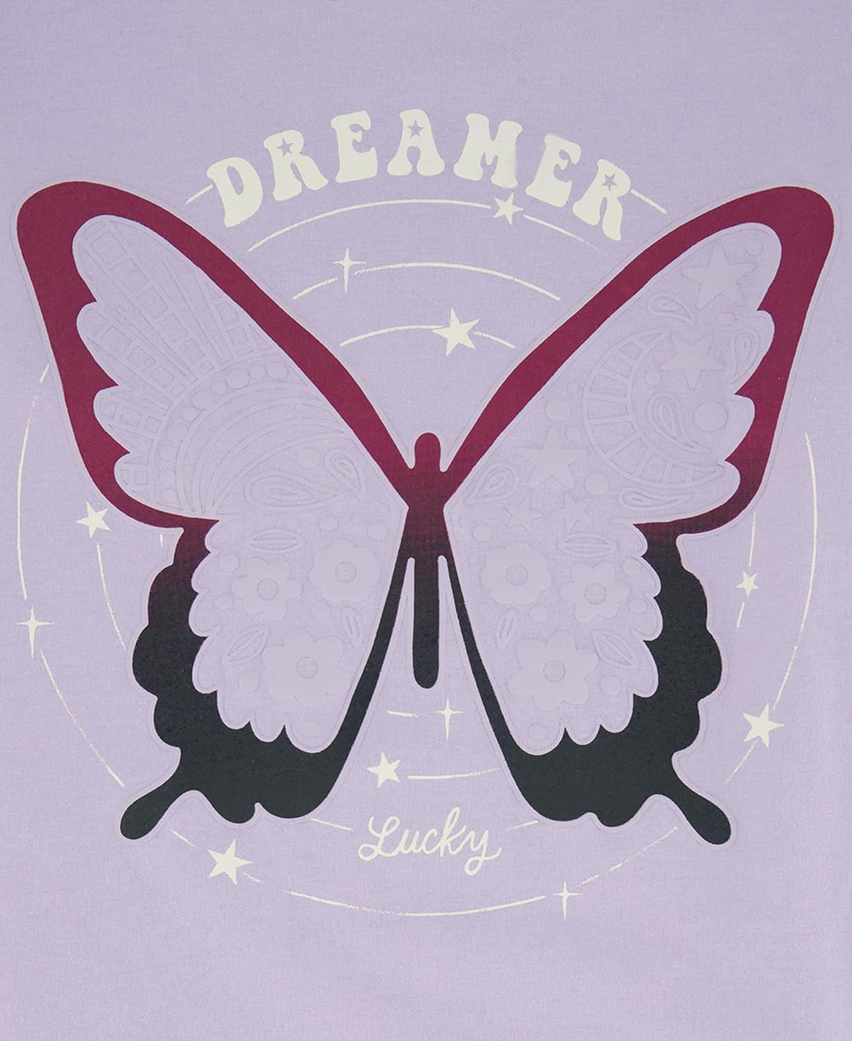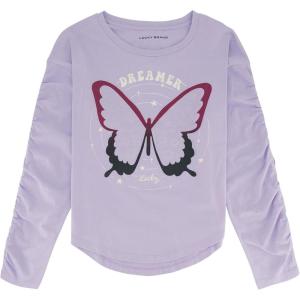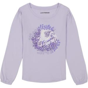 Lucky Brand Girls’ Long Sleeve Graphic T-Shirt, Tagless Cotton Tee with Fun Designs(Pastel Lilac Dreamer)