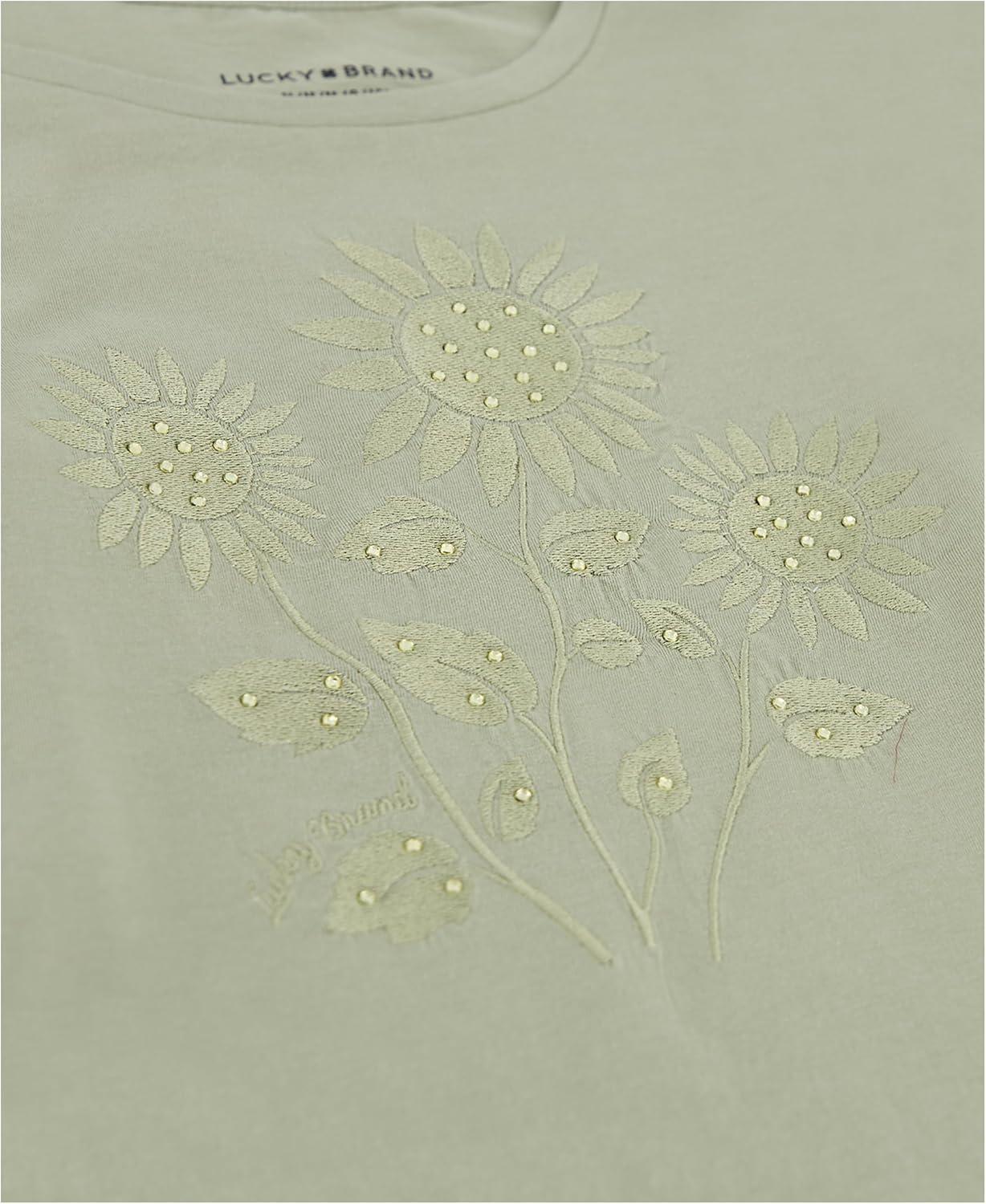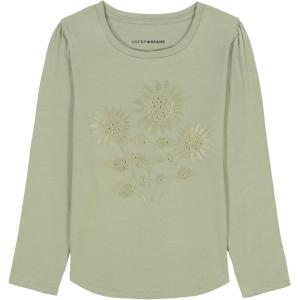 Lucky Brand Girls’ Long Sleeve Graphic T-Shirt, Tagless Cotton Tee with Fun Designs(Seagrass Sunflowers)
