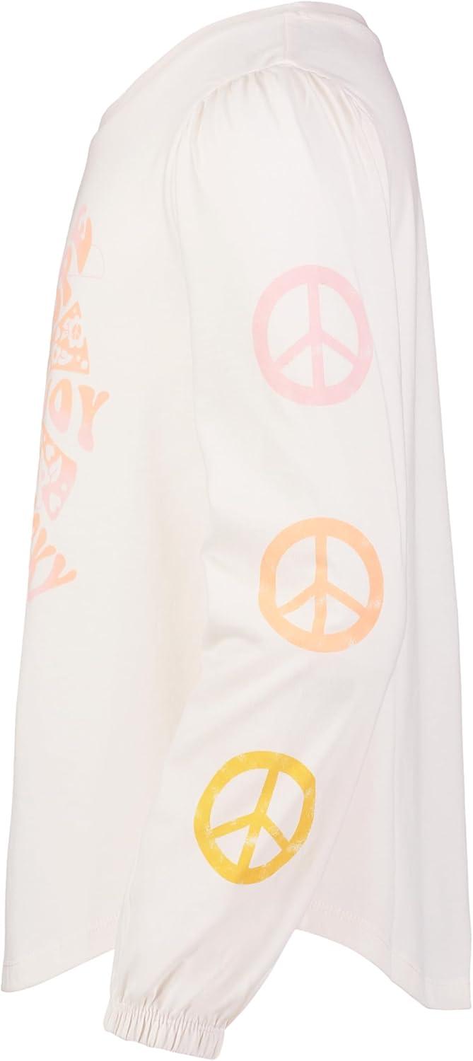 Lucky Brand Girls’ Long Sleeve Graphic T-Shirt, Tagless Cotton Tee with Fun Designs(Whisper Peace)