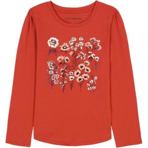 Lucky Brand Girls’ Long Sleeve Graphic T-Shirt, Tagless Cotton Tee with Fun Designs(Bossa Nova Botanical)