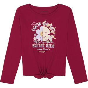 Lucky Brand Girls’ Long Sleeve Graphic T-Shirt, Tagless Cotton Tee with Fun Designs(Red Plum)