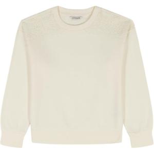 Lucky Brand Girls’ Pullover Crochet Fleece Crew Neck Sweatshirt, Soft & Comfortable(Gardenia)