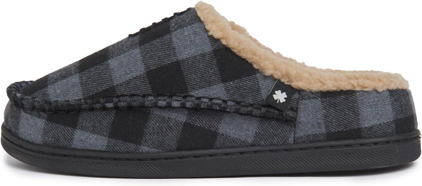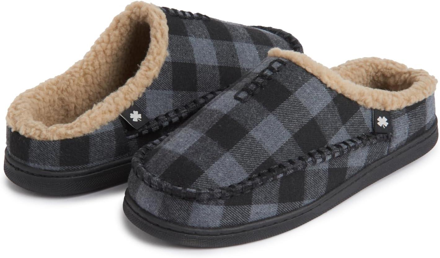 Lucky Brand Boys Buffalo Plaid Memory Foam Clog Slippers, Non Slip Rubber Sole House Shoes, Kids Cozy Fluffy Bedroom Clogs(Grey)