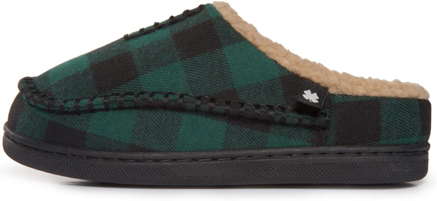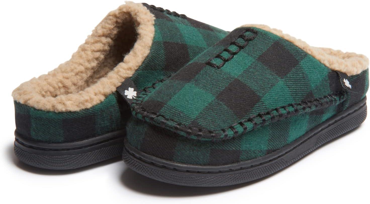 Lucky Brand Boys Buffalo Plaid Memory Foam Clog Slippers, Non Slip Rubber Sole House Shoes, Kids Cozy Fluffy Bedroom Clogs(Hunter Green)
