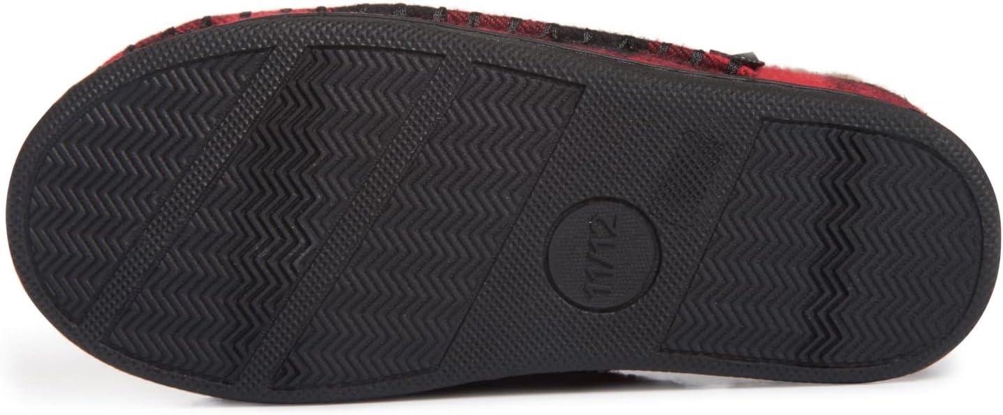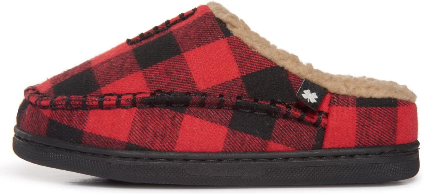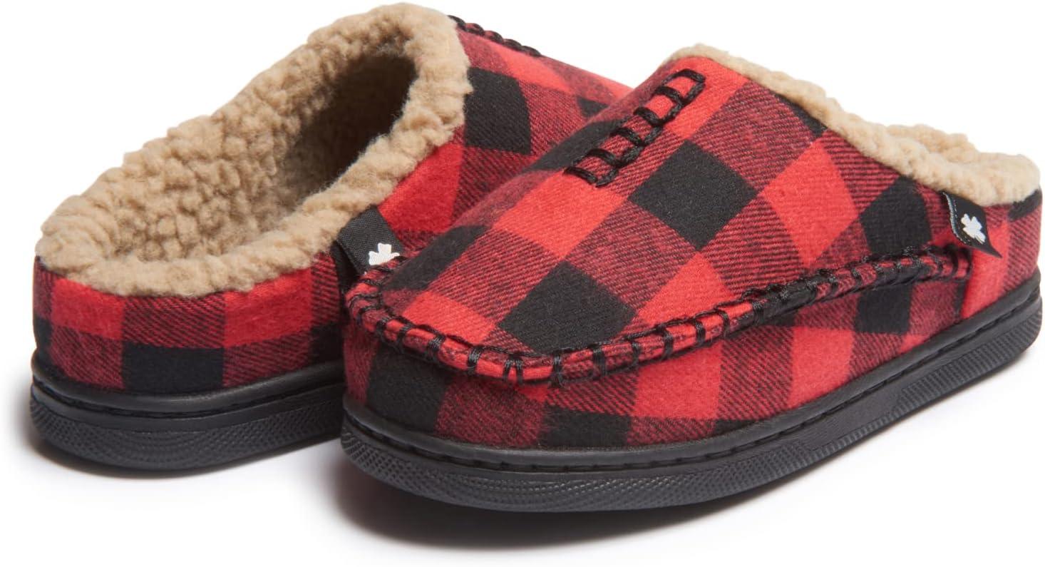 Lucky Brand Boys Buffalo Plaid Memory Foam Clog Slippers, Non Slip Rubber Sole House Shoes, Kids Cozy Fluffy Bedroom Clogs(Red)