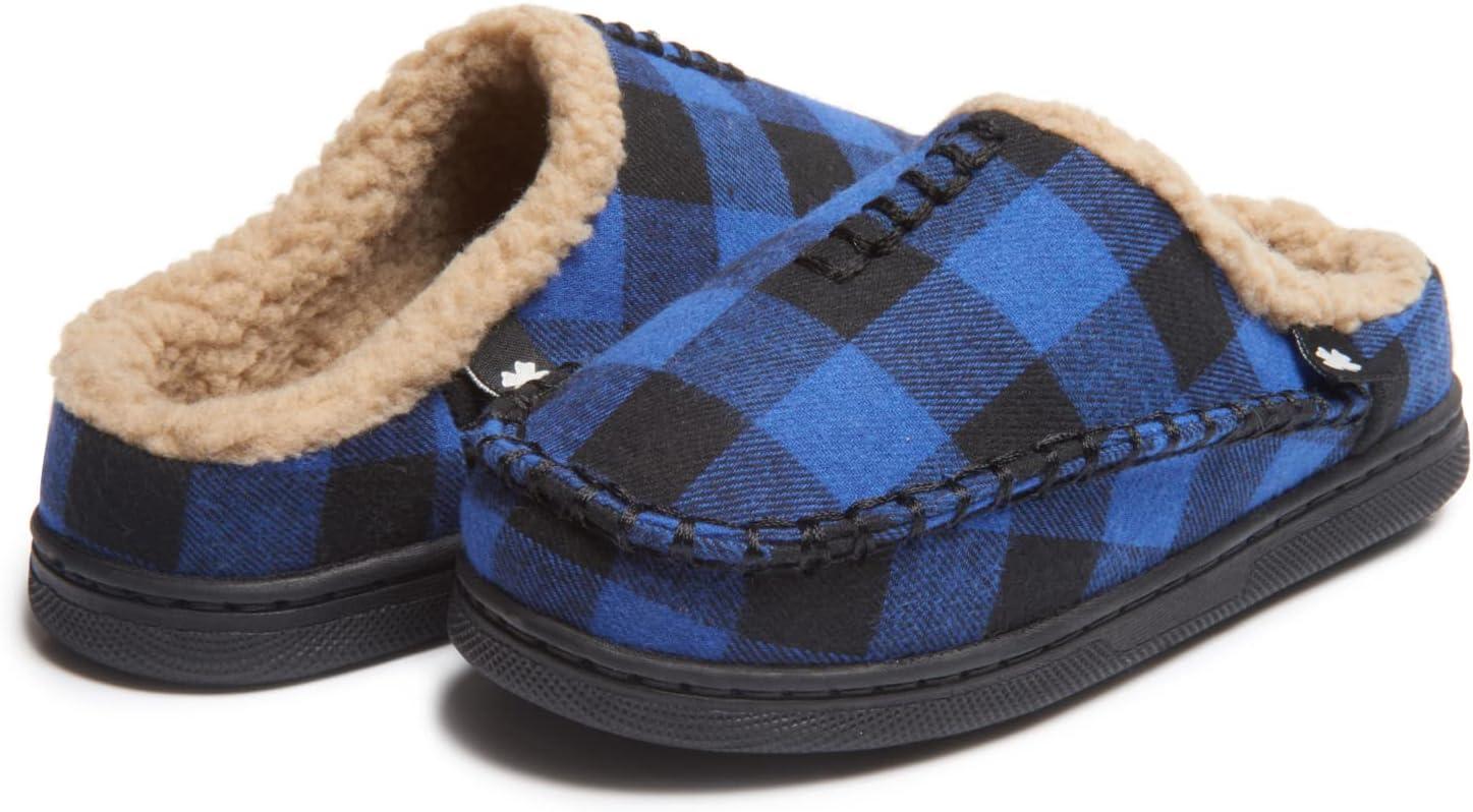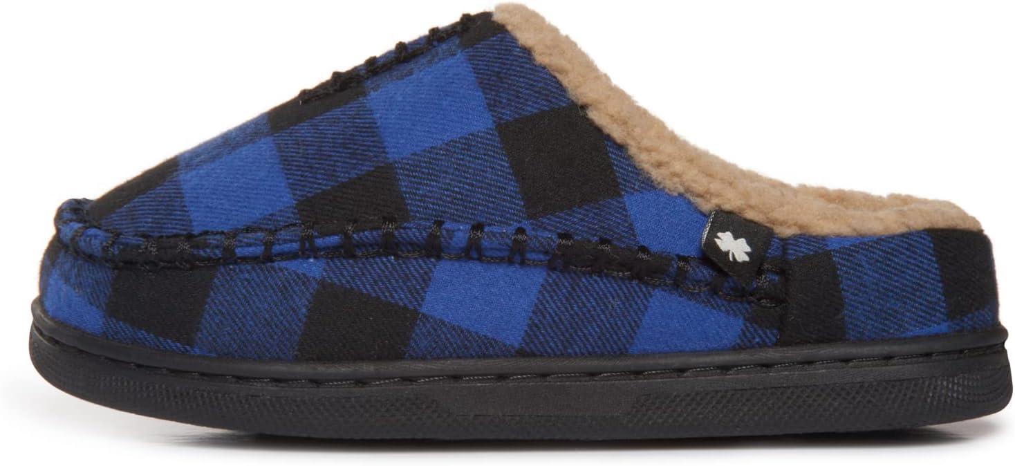 Lucky Brand Boys Buffalo Plaid Memory Foam Clog Slippers, Non Slip Rubber Sole House Shoes, Kids Cozy Fluffy Bedroom Clogs(Royal)