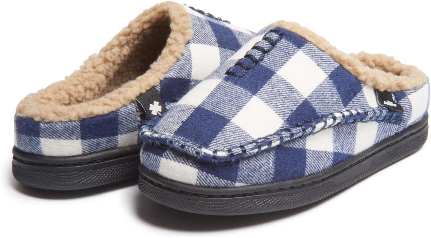 Lucky Brand Boys Buffalo Plaid Memory Foam Clog Slippers, Non Slip Rubber Sole House Shoes, Kids Cozy Fluffy Bedroom Clogs(White Navy)