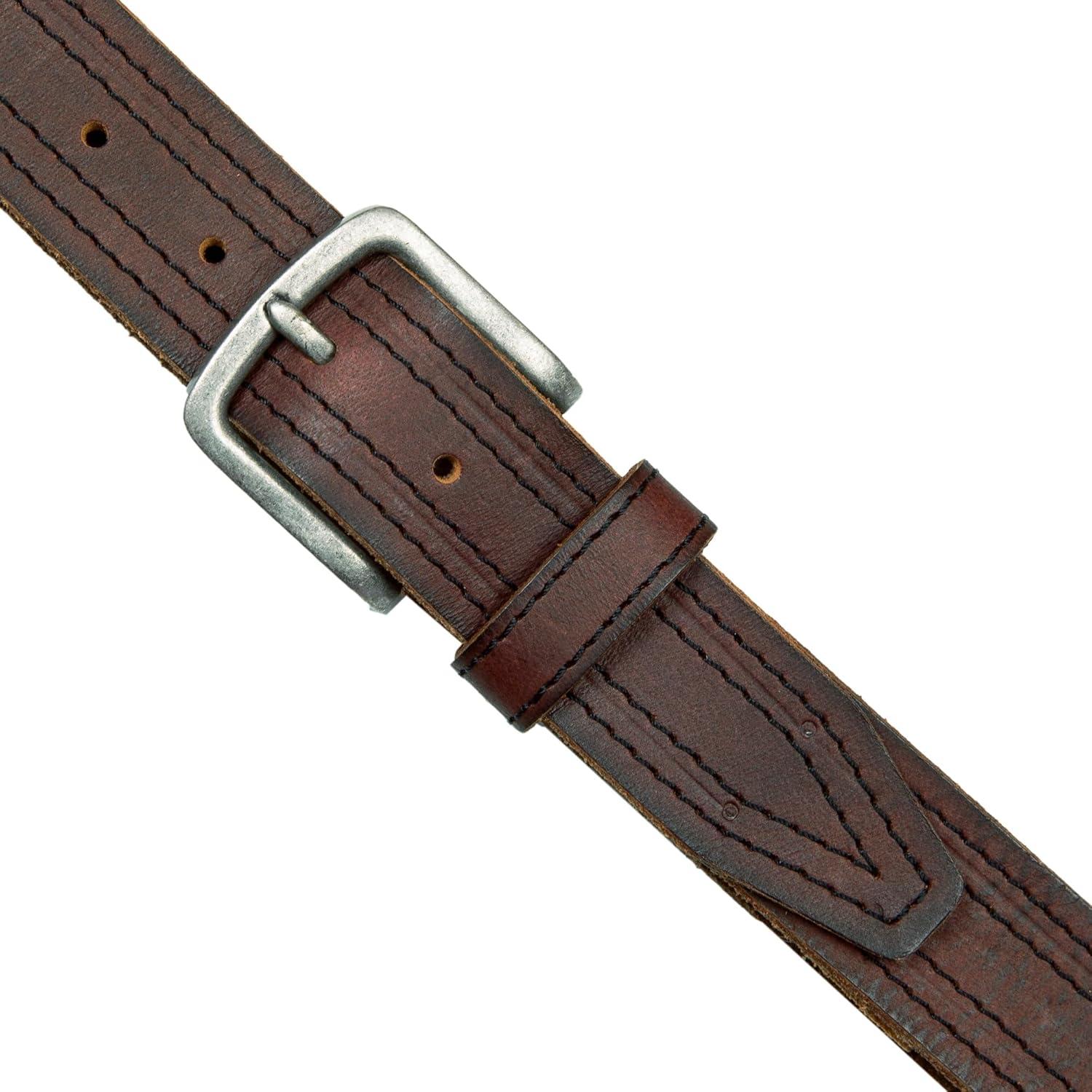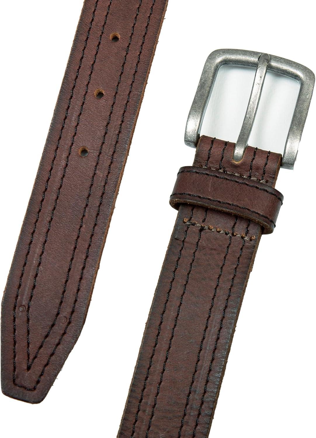 Lucky Brand Men’s Stitched Leather Belt | Classic | Casual | Dress | Everyday | Western | Genuine Leather | Metal Buckle(Triple Needle Stitch – Brown)