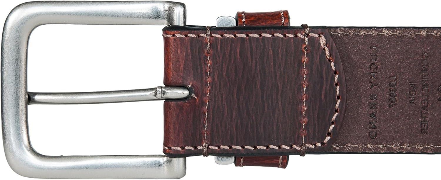 - Save up to 40% on Lucky Brand Men's Jeans Leather Belt| Classic| Casual| Dress| Everyday| American Heritage| Genuine Leather| Metal Buckle(Covered Roller - Dark Brown) styles during our end-of-season sale.