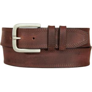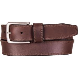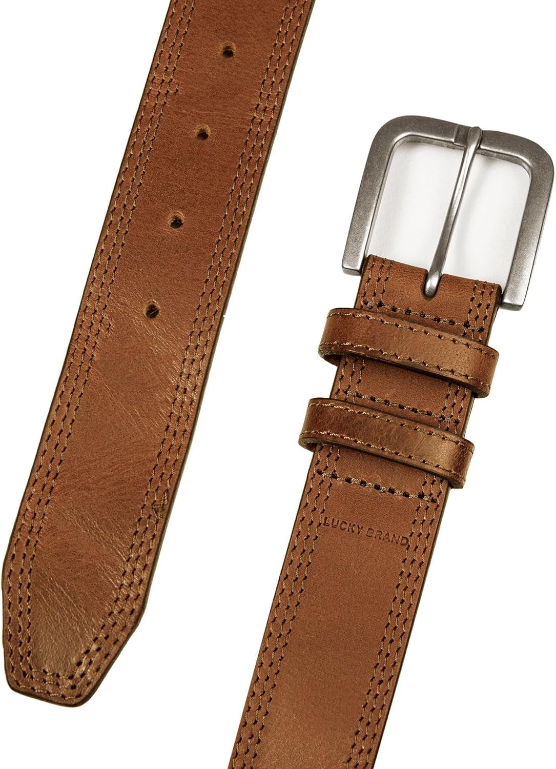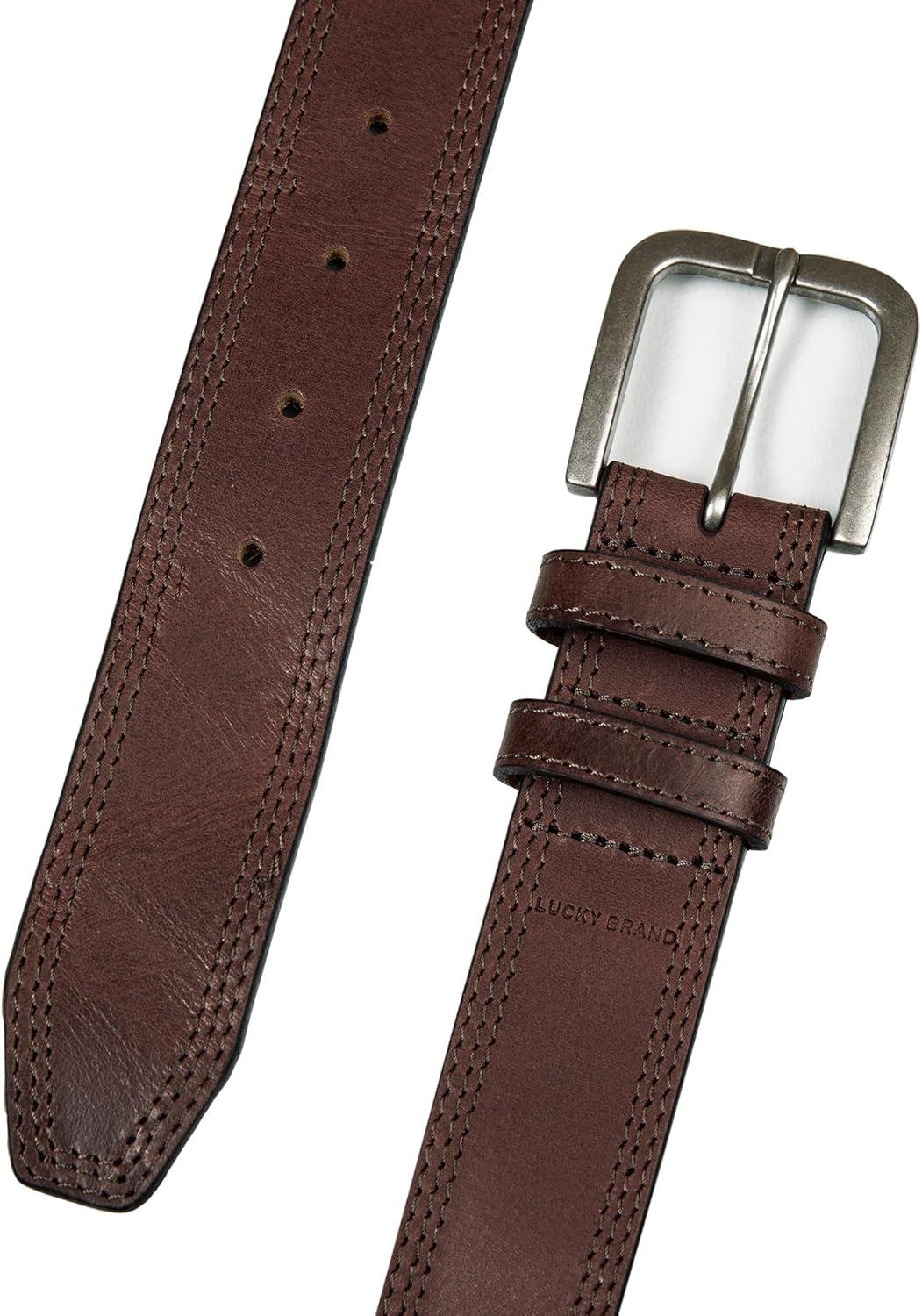 Lucky Brand Men’s Stitched Leather Belt | Classic | Casual | Dress | Everyday | Western | Genuine Leather | Metal Buckle(Double Stitch – Brown)