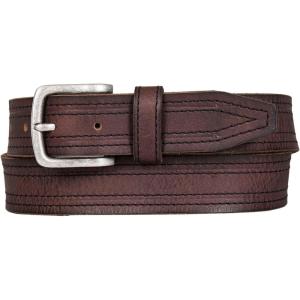 Lucky Brand Men’s Stitched Leather Belt | Classic | Casual | Dress | Everyday | Western | Genuine Leather | Metal Buckle(Antiqued Leather – Brown)