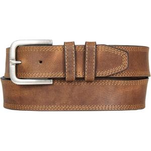 Lucky Brand Men’s Stitched Leather Belt | Classic | Casual | Dress | Everyday | Western | Genuine Leather | Metal Buckle(Antiqued Leather – Tan)