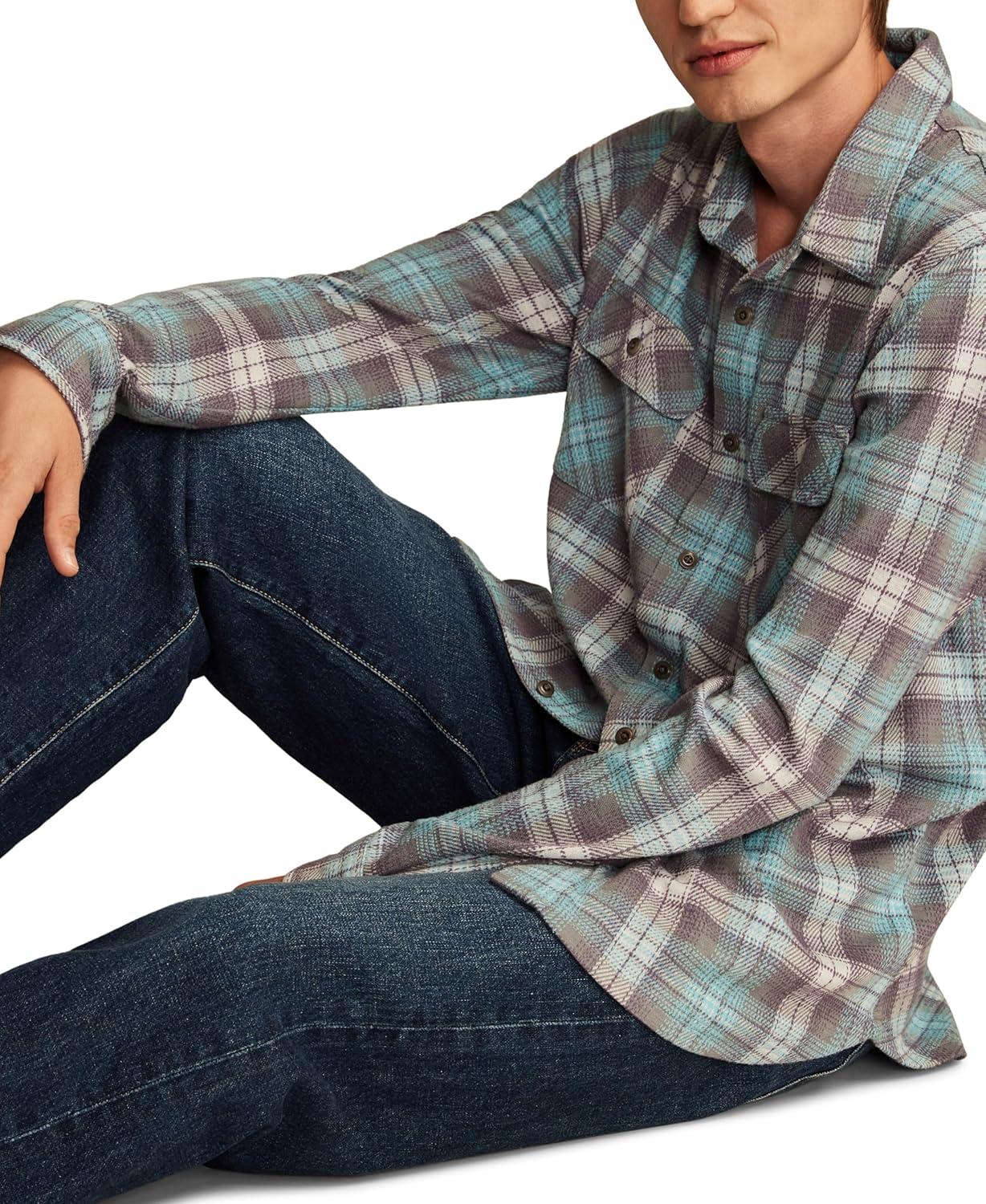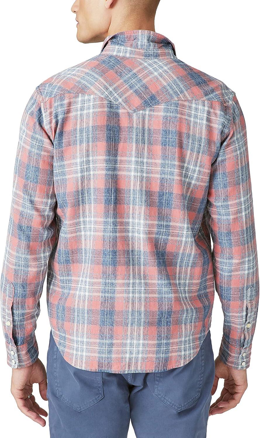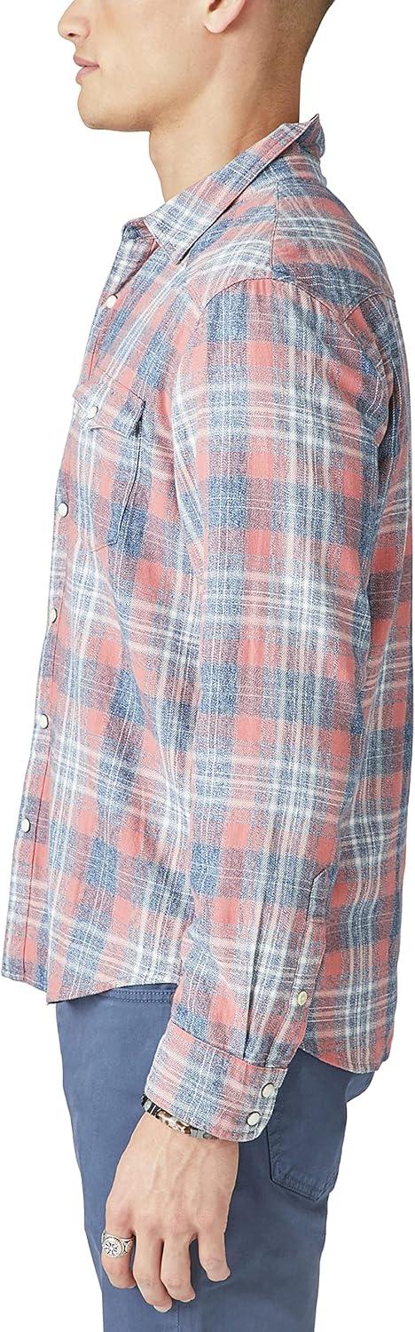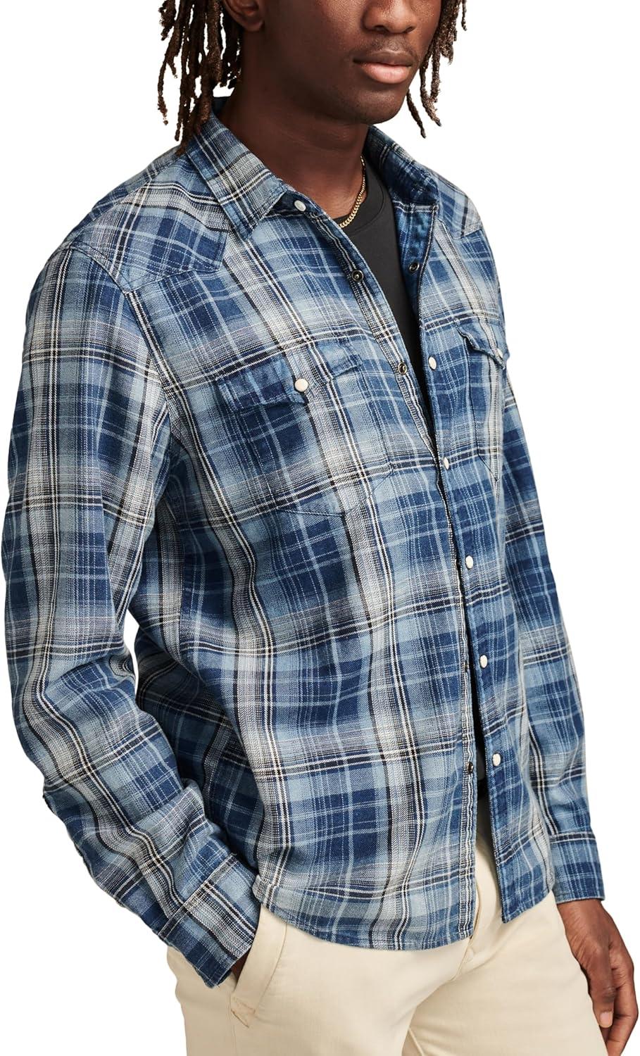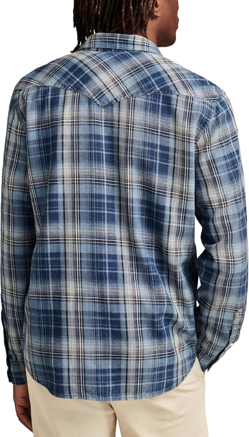 Lucky Brand Men’s Indigo Plaid Western Long Sleeve Shirt(Indigo Plaid)