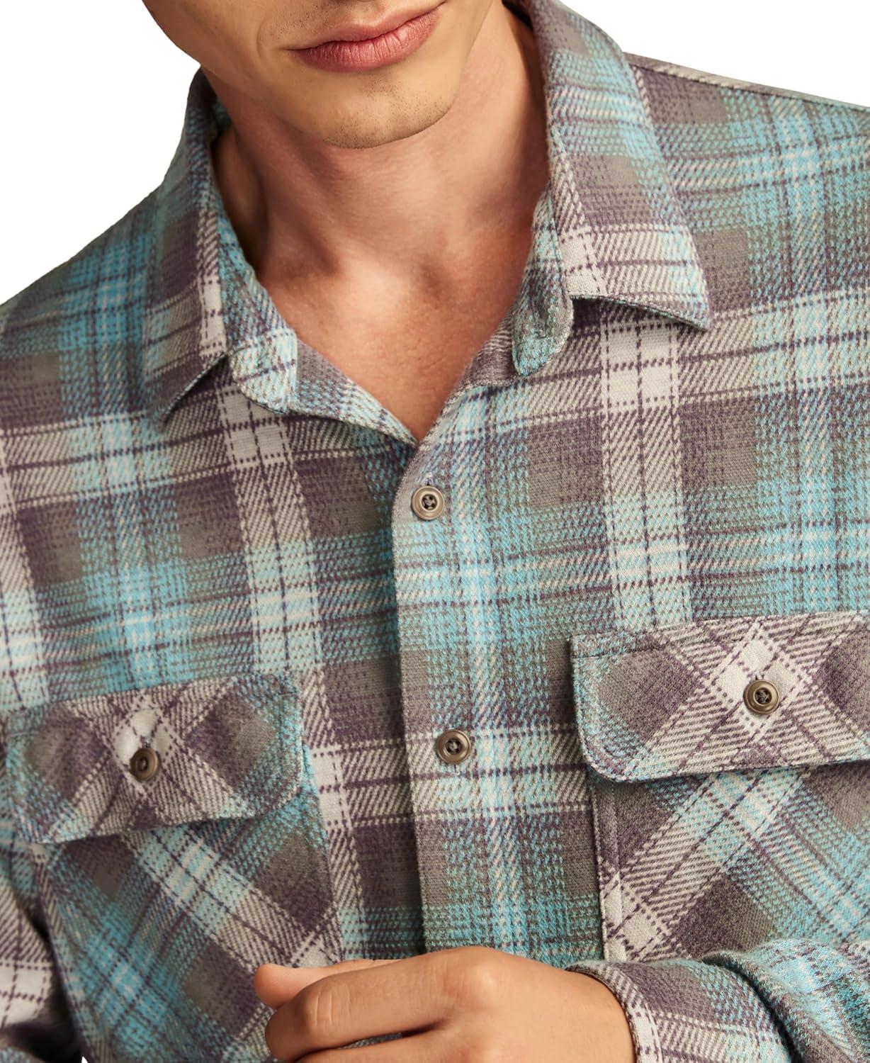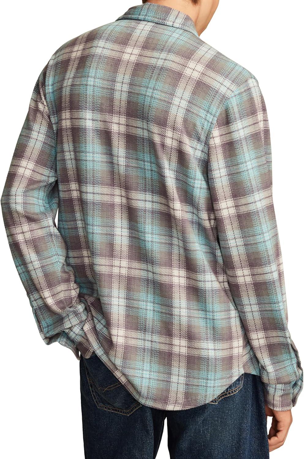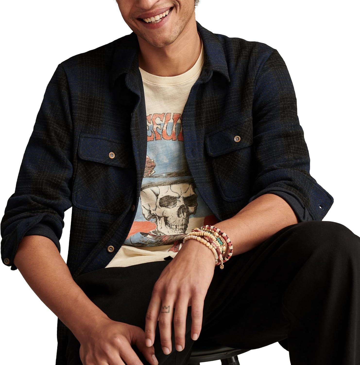 Lucky Brand Men’s Brushed Long Sleeve Knit Shirting(Blue Multi)