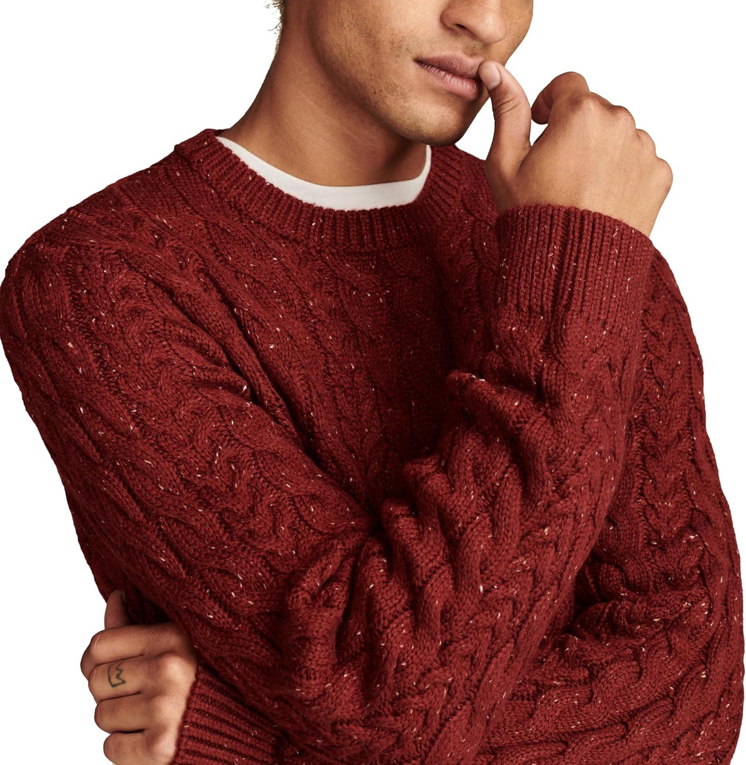 Lucky Brand Men’s Cable Crew Neck Sweater(Cabernet)