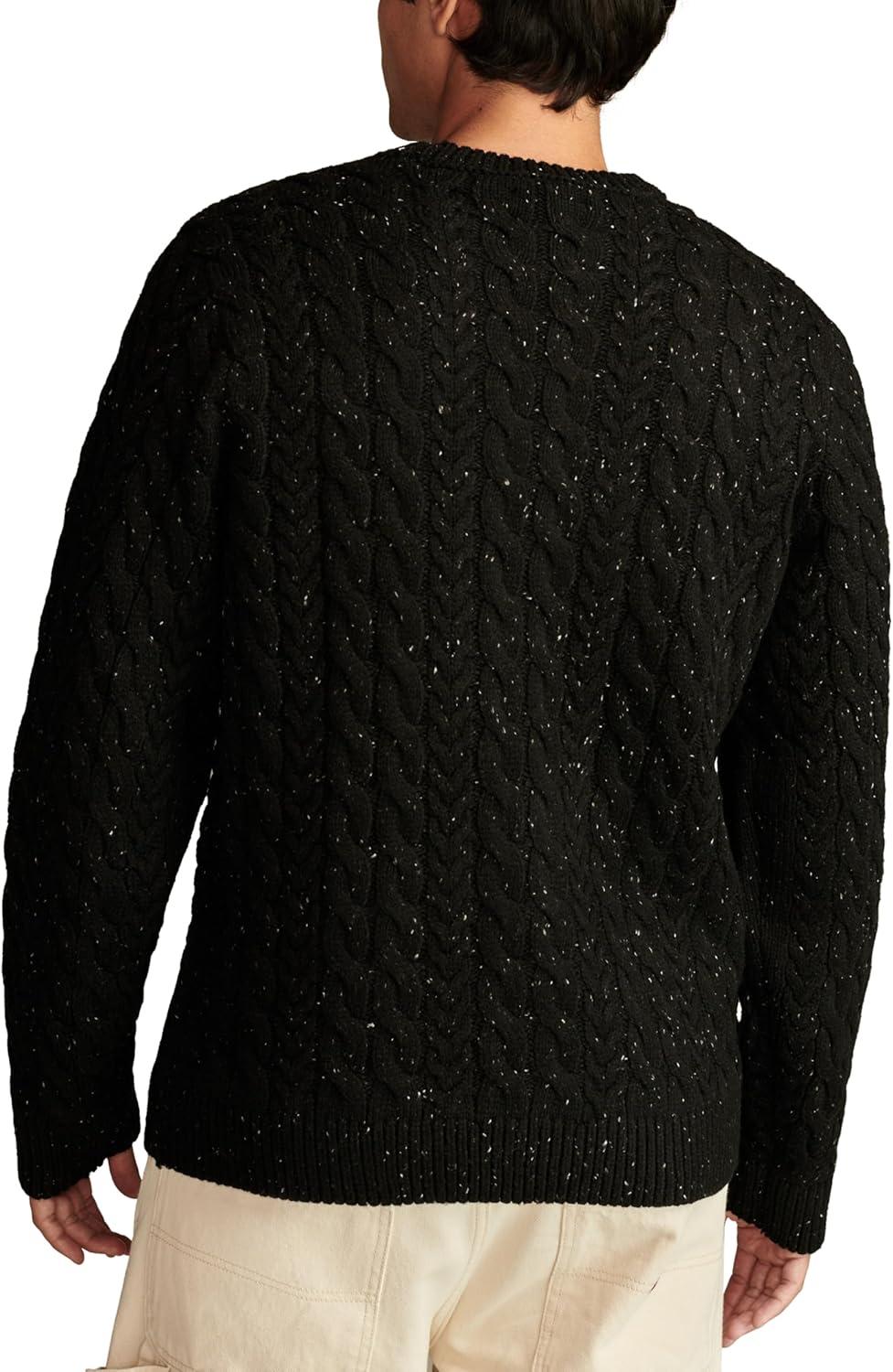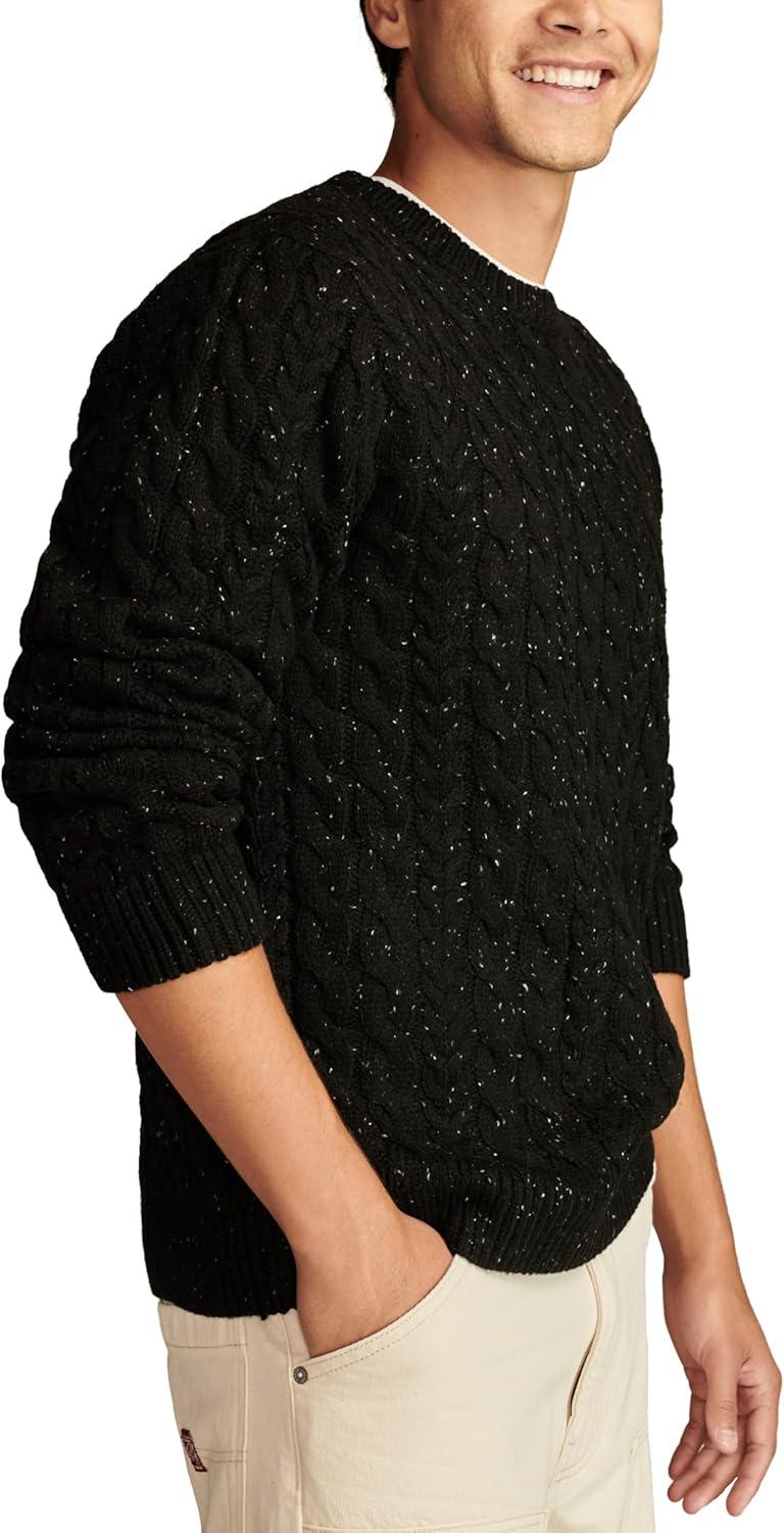 Lucky Brand Men’s Cable Crew Neck Sweater(Dark Black)