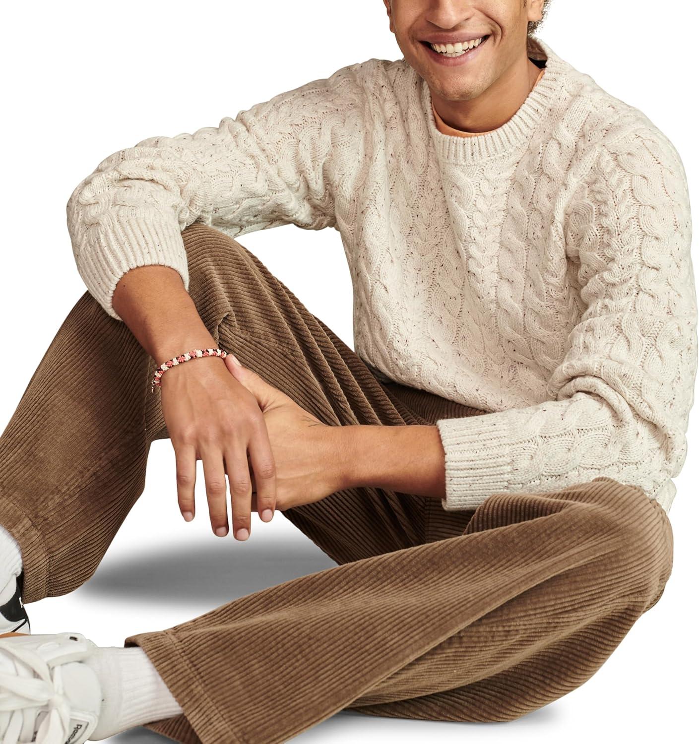 Lucky Brand Men’s Cable Crew Neck Sweater(Tofu)