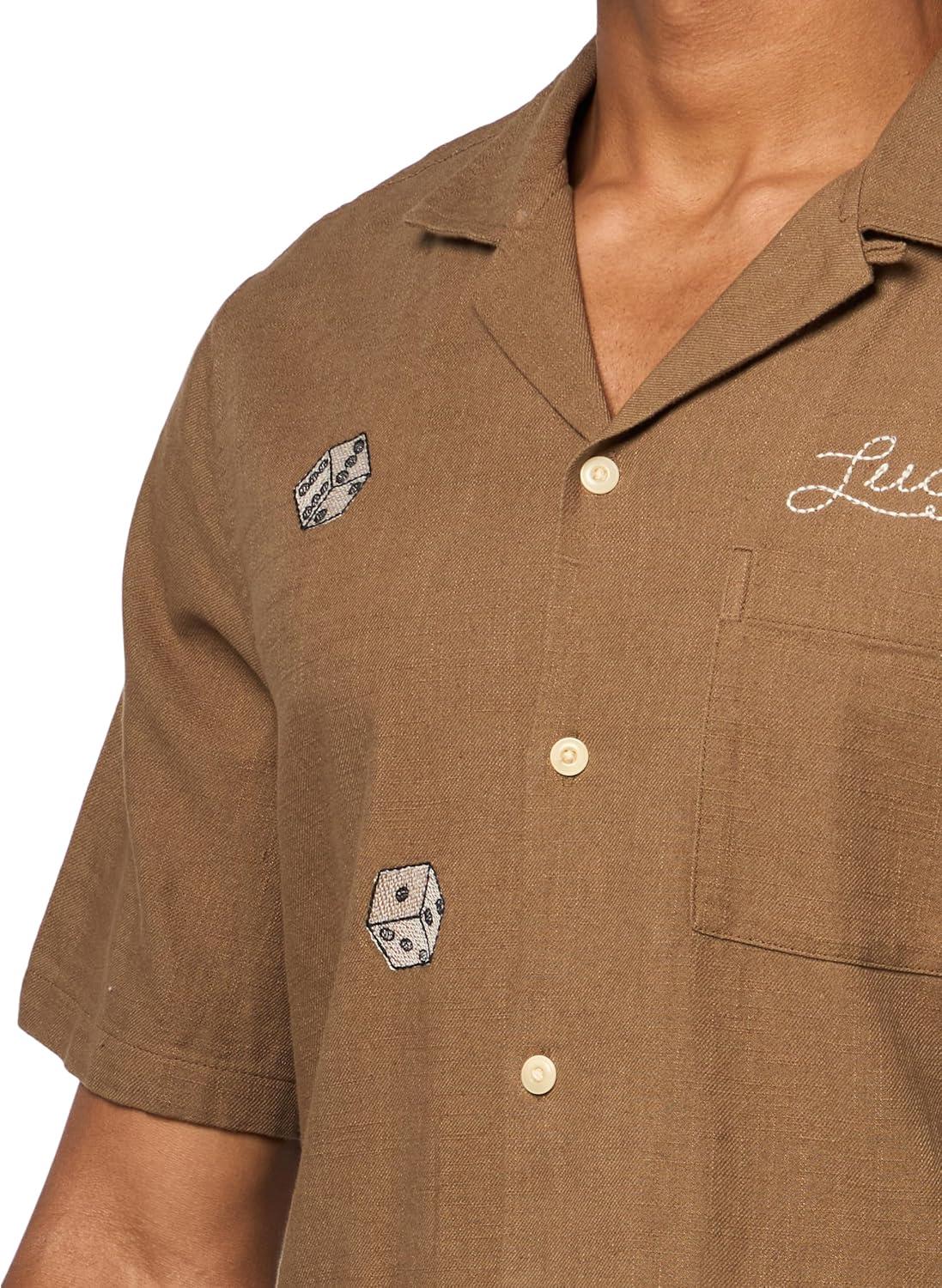 Lucky Brand Men’s Embroidered Camp Collar Shirt(Teak)