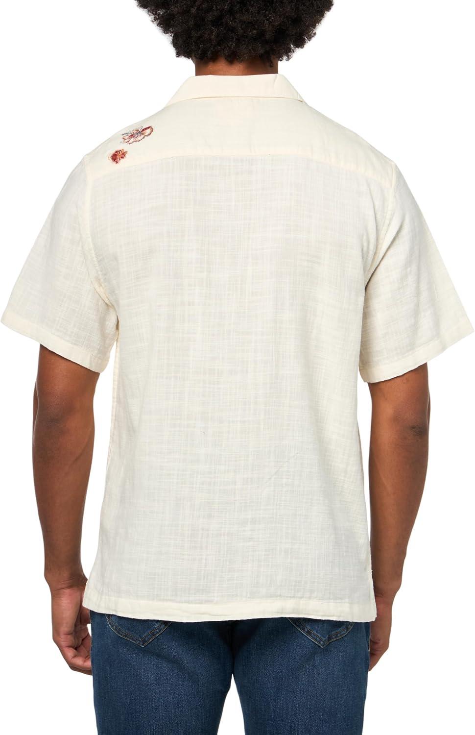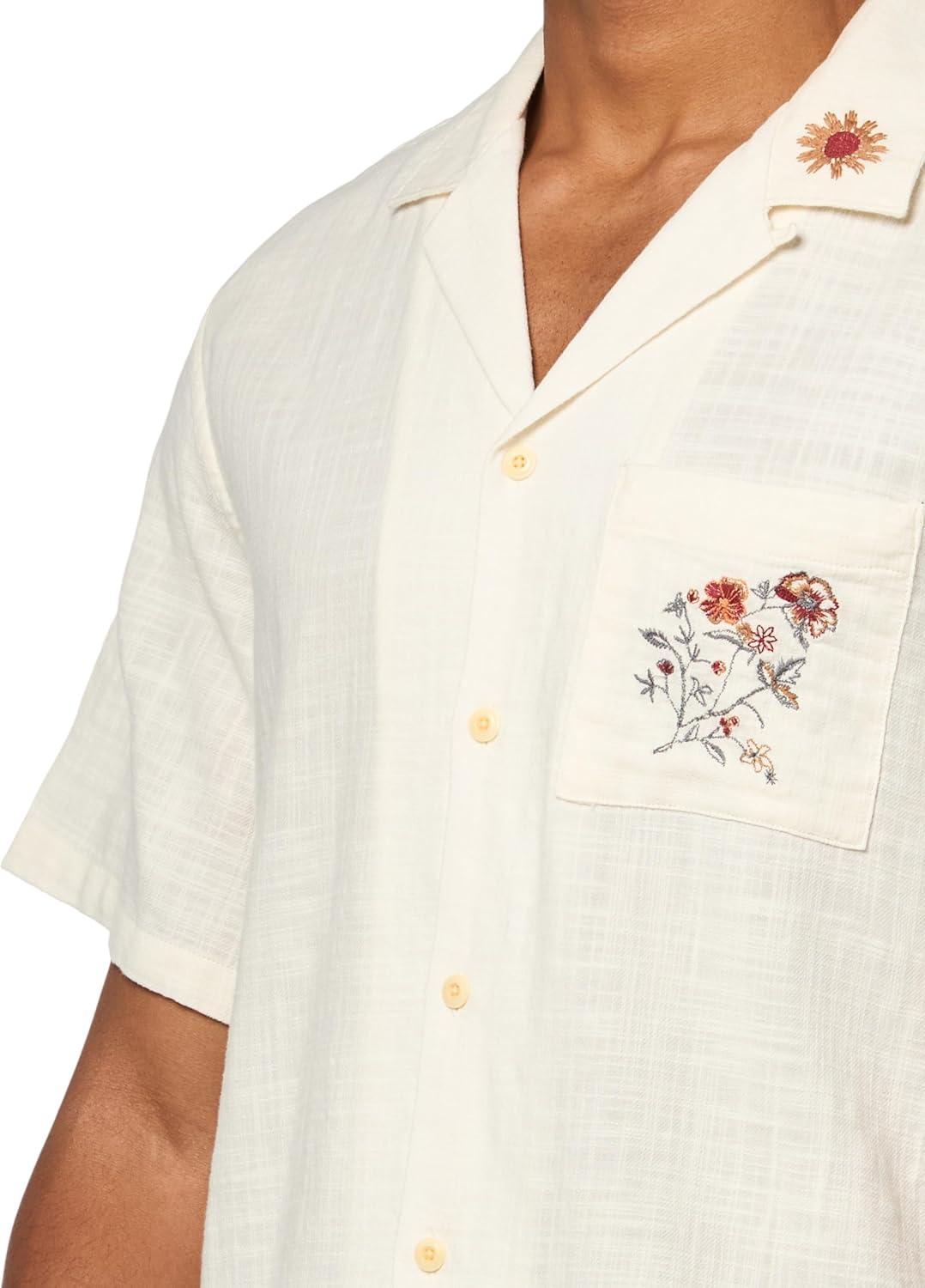 Lucky Brand Men’s Embroidered Camp Collar Shirt(Whisper White)