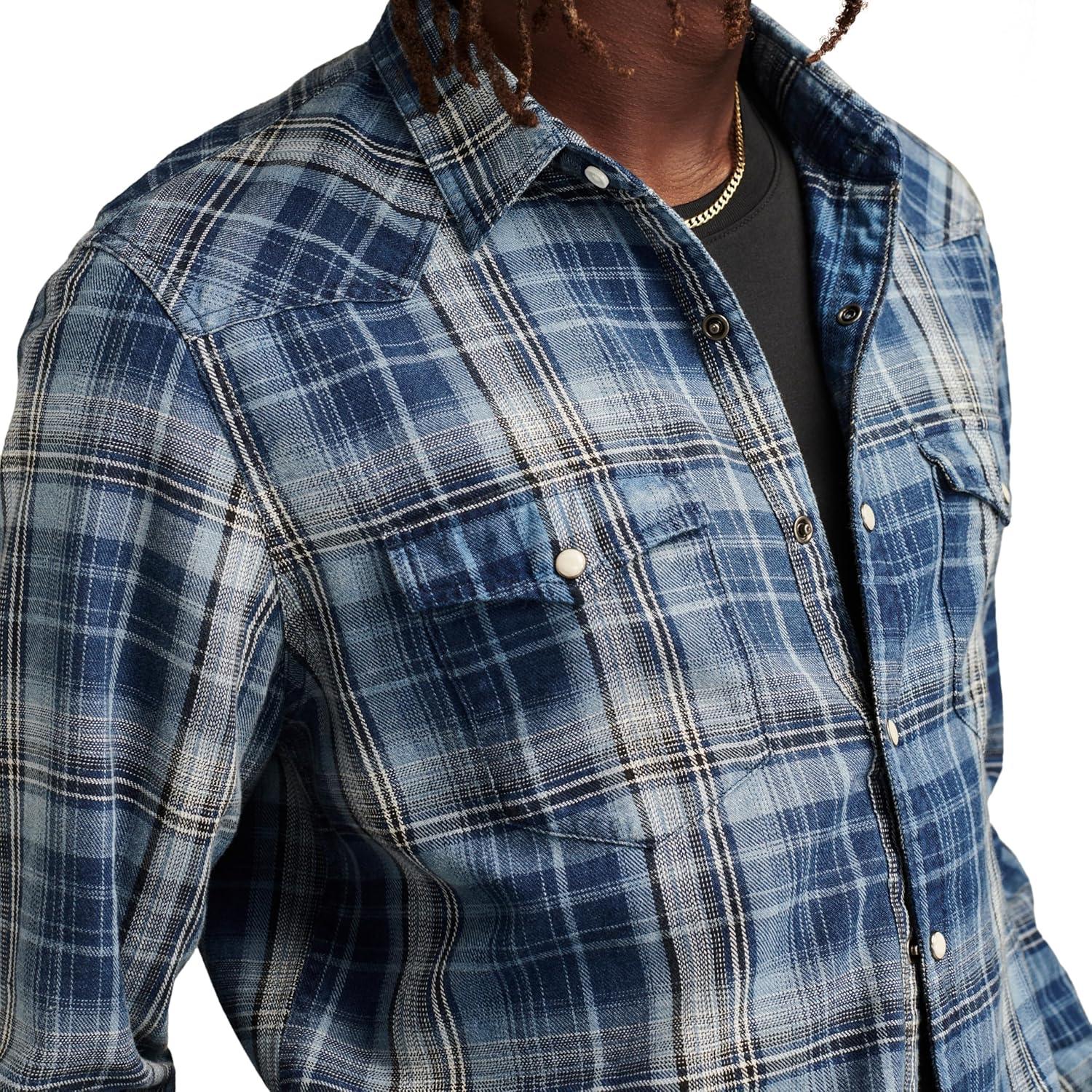Lucky Brand Men’s Indigo Plaid Western Long Sleeve Shirt(Dark Indigo)