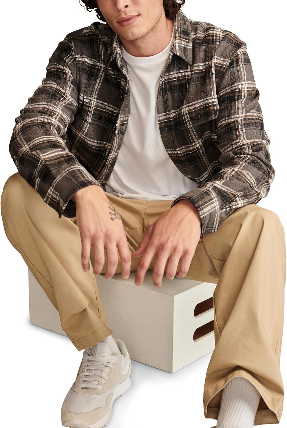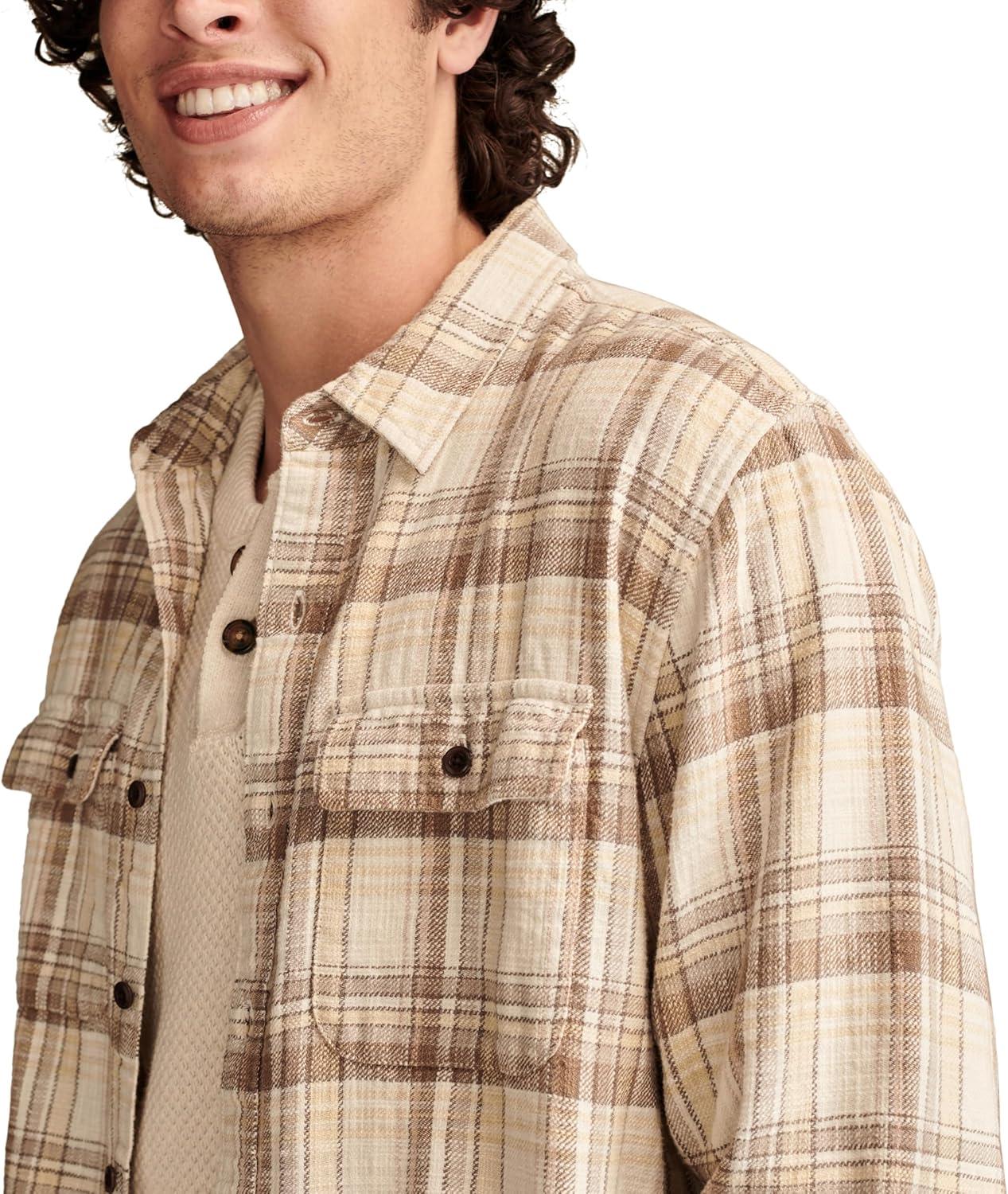 Lucky Brand Men’s Big Slub Twill Plaid Long Sleeve Utility Shirt(Brown Multi)