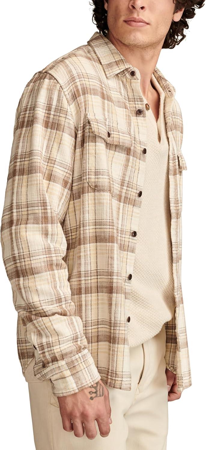 Lucky Brand Men’s Brushed Long Sleeve Knit Shirting(Brown Multi)
