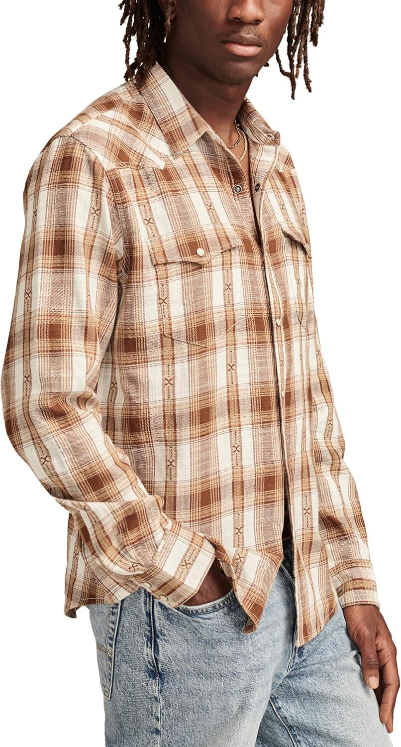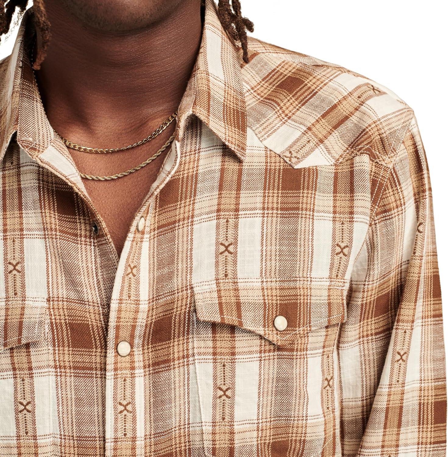 Lucky Brand Men’s Dobby Western Long Sleeve Shirt(Brown Multi)