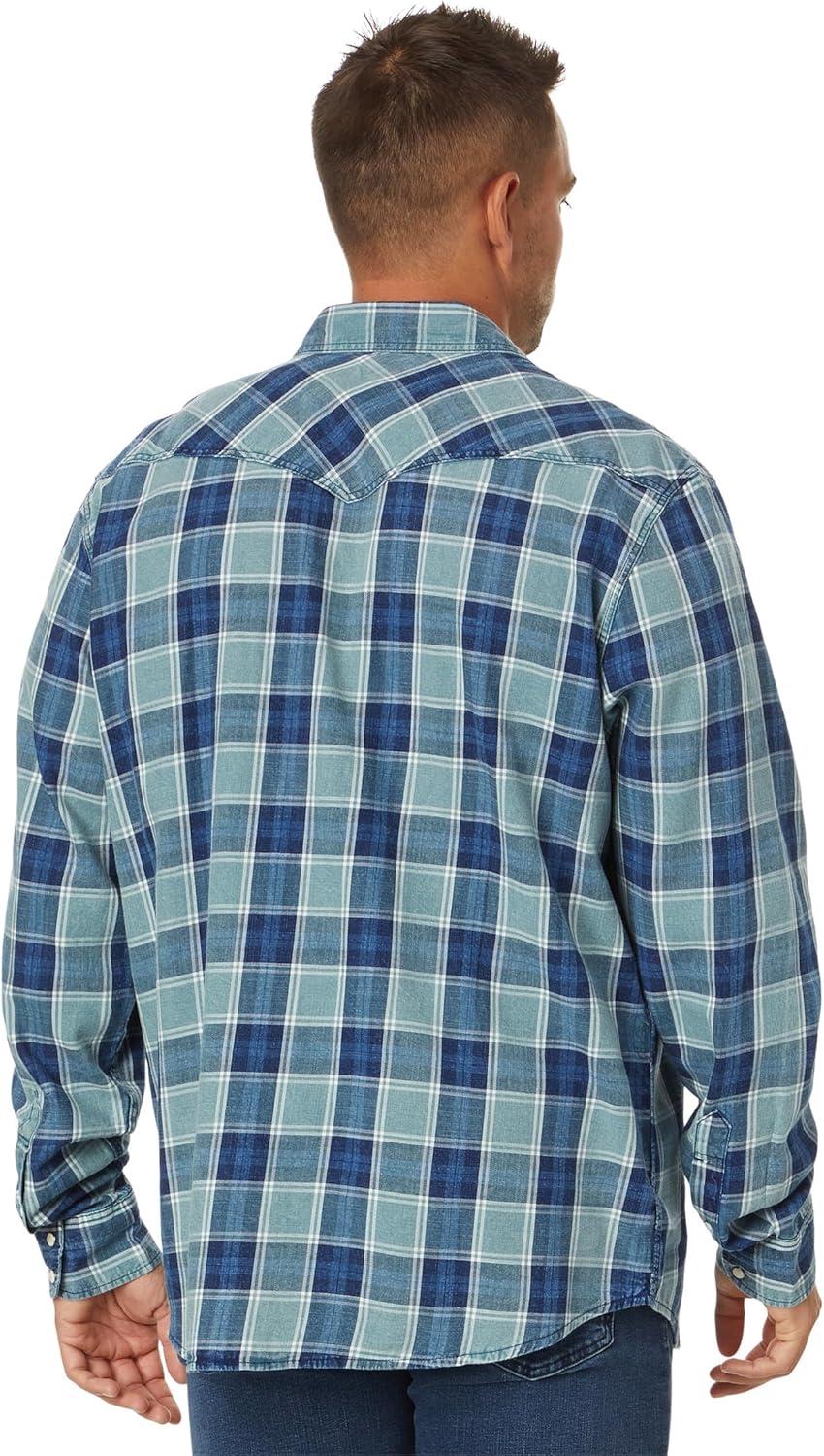 Lucky Brand Men’s Indigo Plaid Western Long Sleeve Shirt(Indigo Plaid)