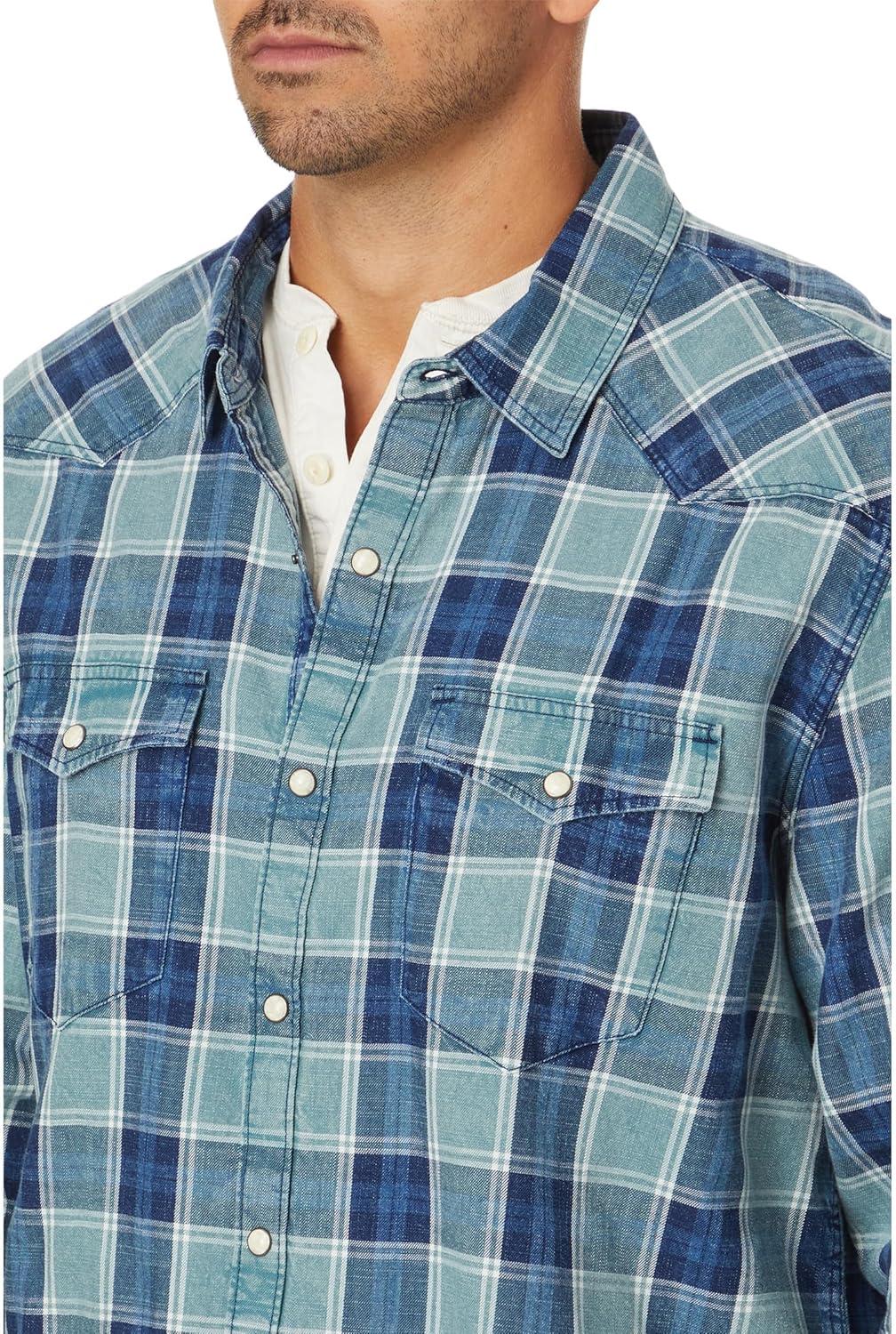 Lucky Brand Men’s Indigo Plaid Western Long Sleeve Shirt(Multi)
