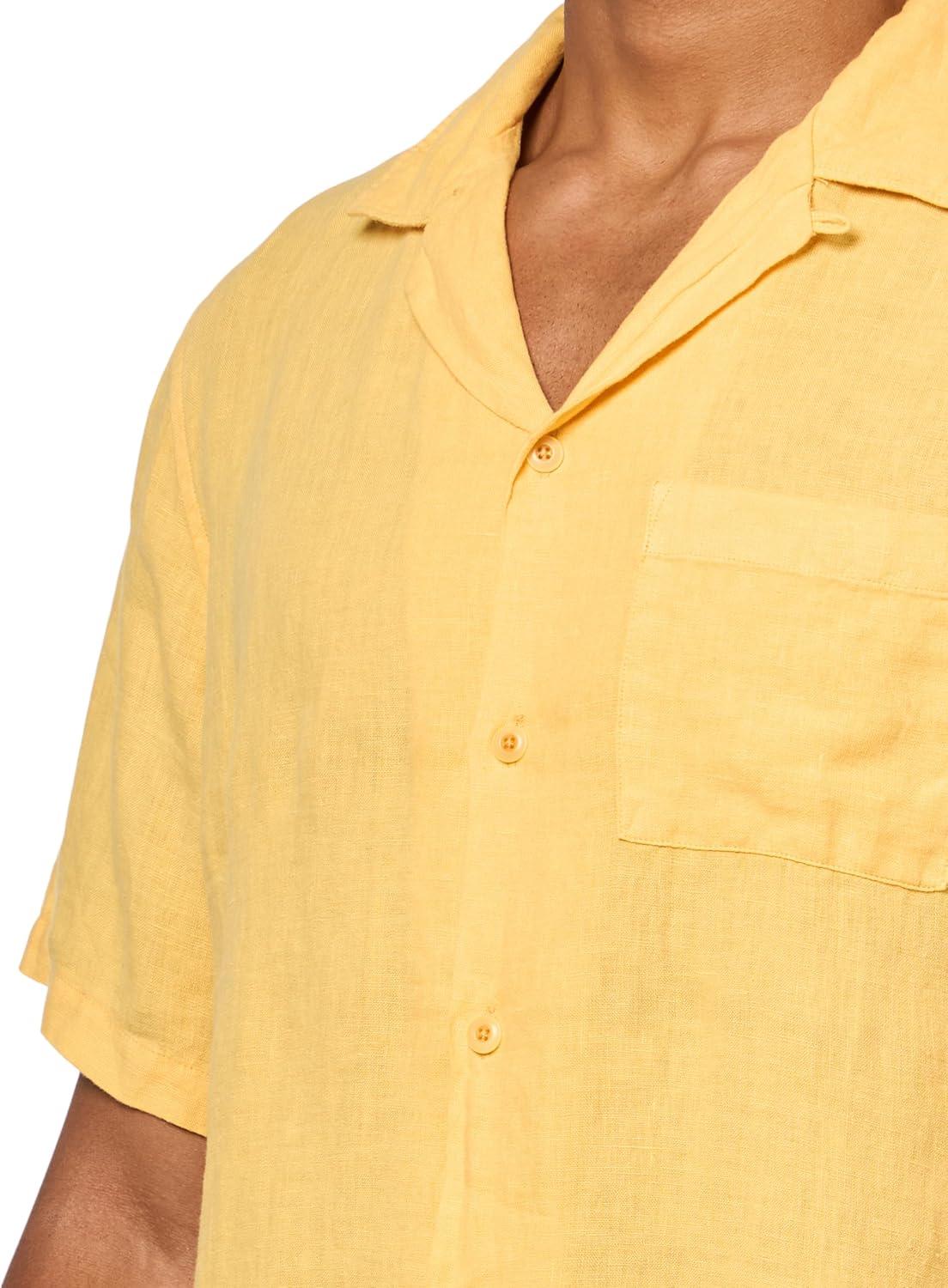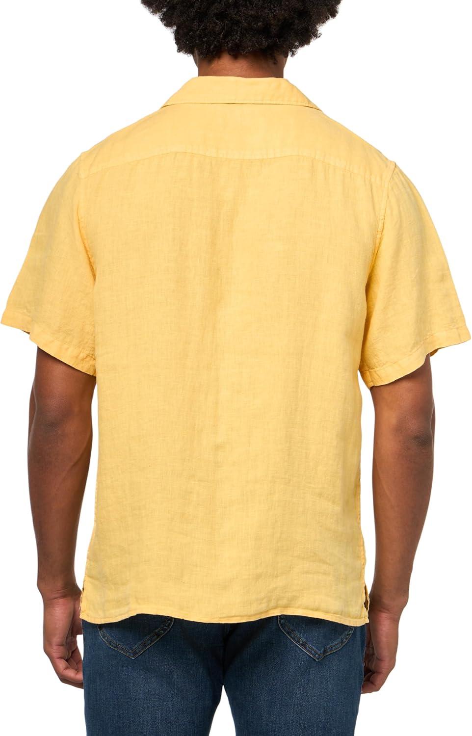 Lucky Brand Men’s Short Sleeve Linen Camp Collar Shirt(Ochre)