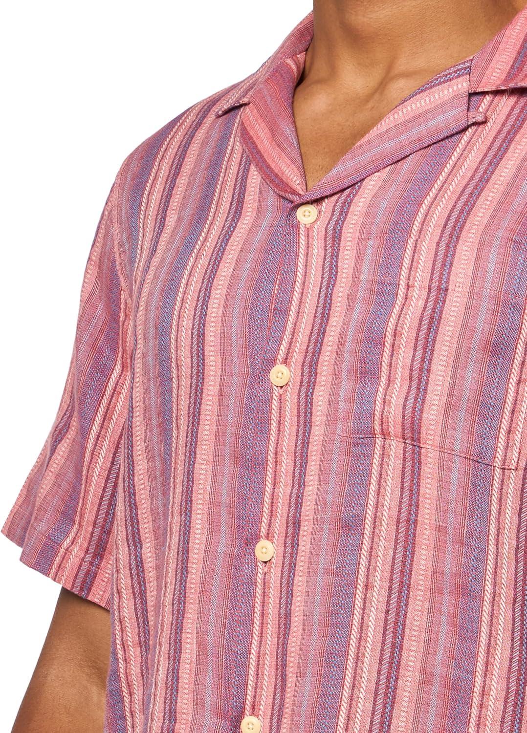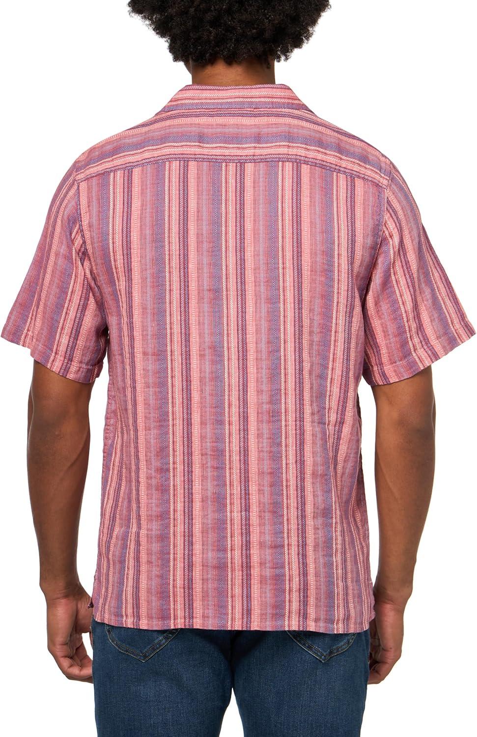 Lucky Brand Men’s Short Sleeve Linen Camp Collar Shirt(Red Multi)