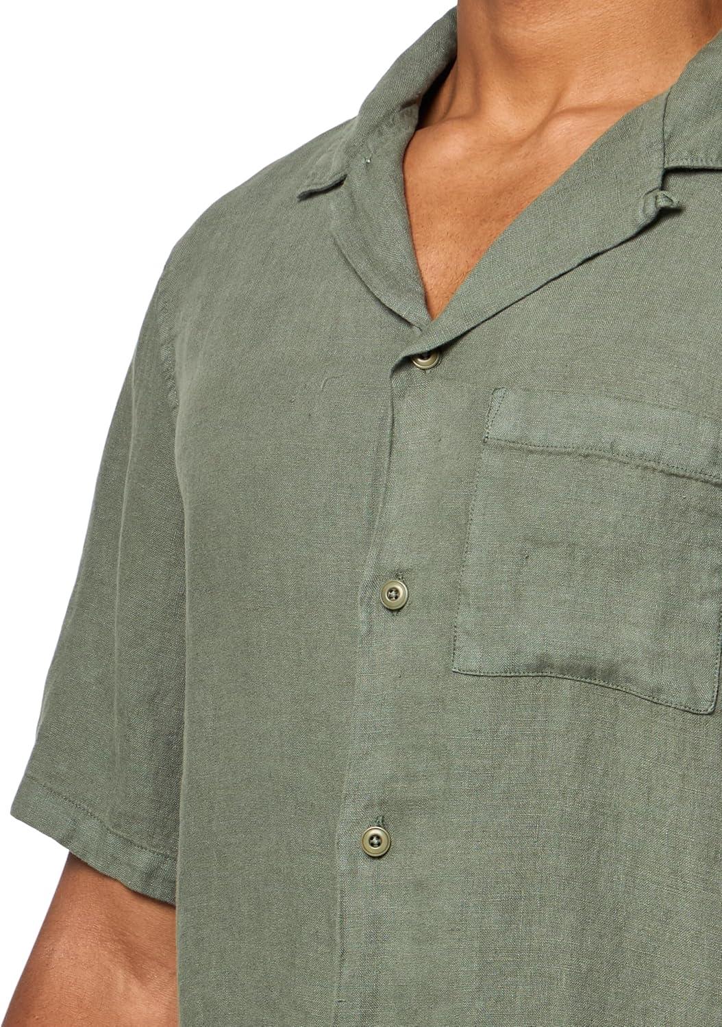 Lucky Brand Men’s Short Sleeve Linen Camp Collar Shirt(Thyme)