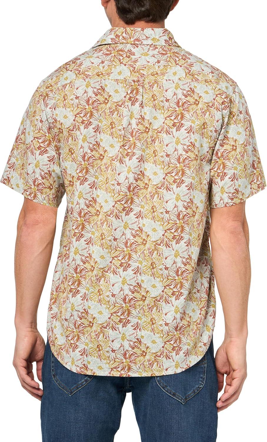 Lucky Brand Men’s Short Sleeve Camp Collar Shirt(Cream Multi)