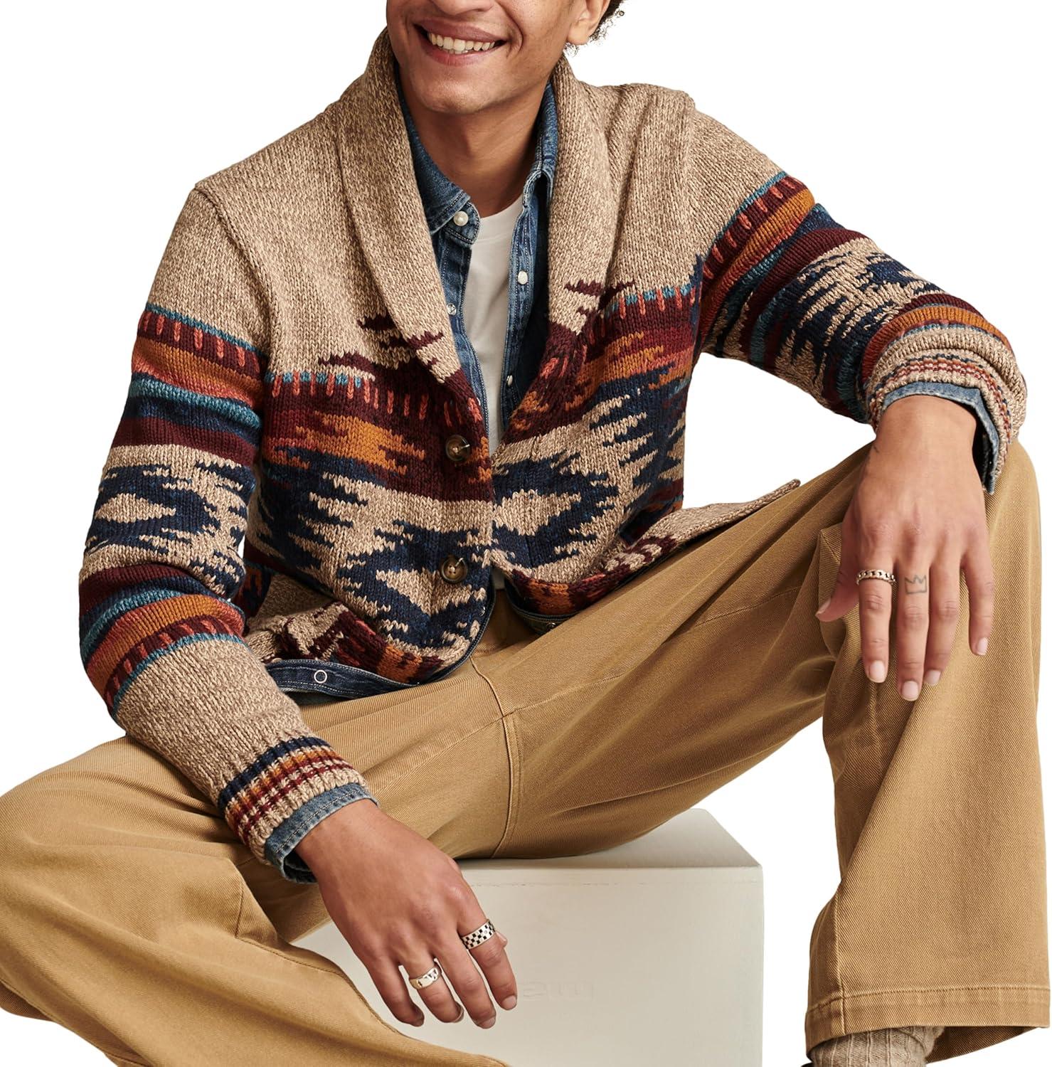Lucky Brand Mens Southwest Shawl Cardigan(Natural Multi Print)