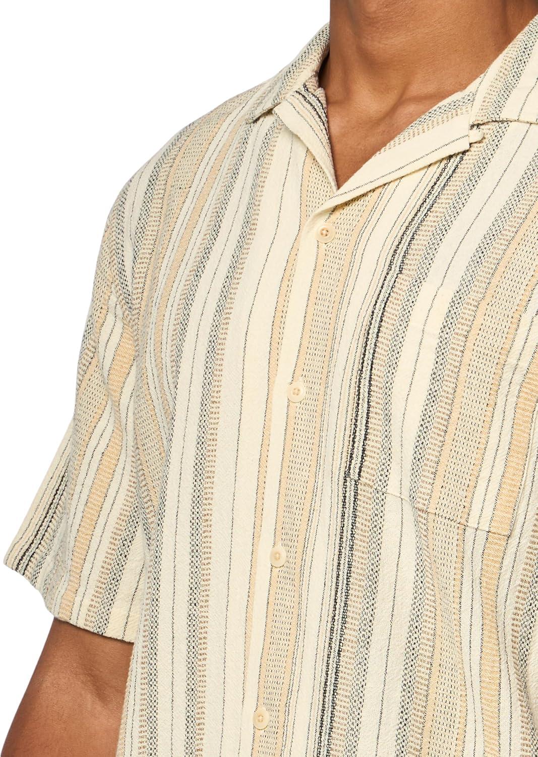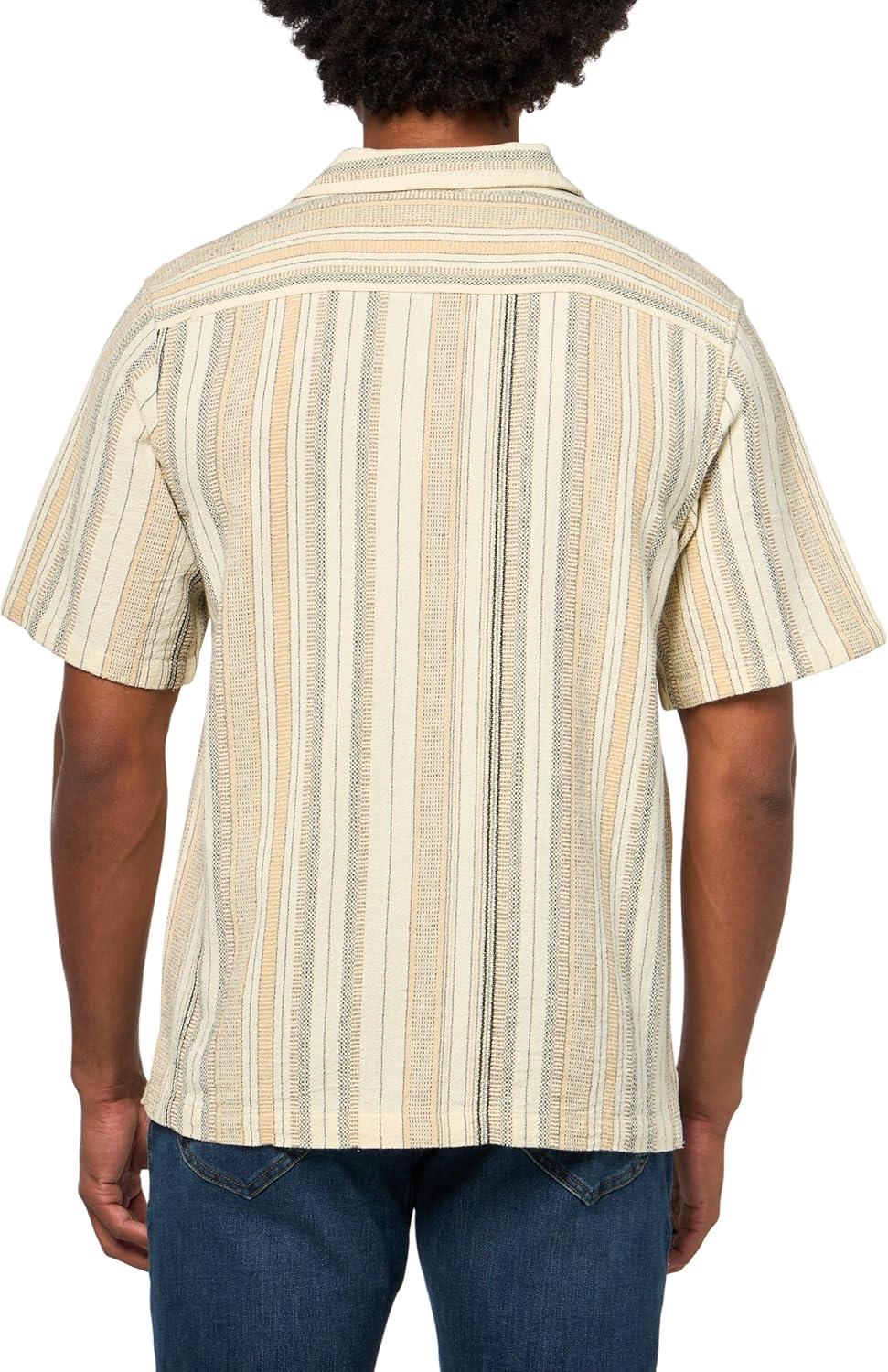 Lucky Brand Men’s Striped Short Sleeve Camp Collar Shirt(Cream Multi)