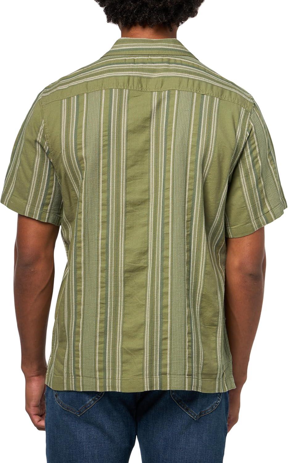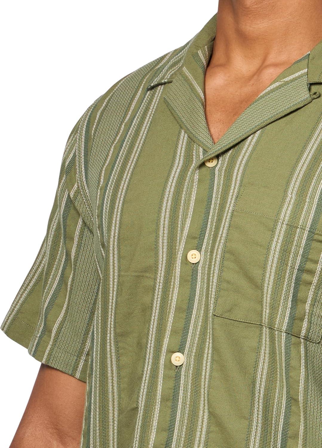 Lucky Brand Men’s Striped Short Sleeve Camp Collar Shirt(Olive Multi)