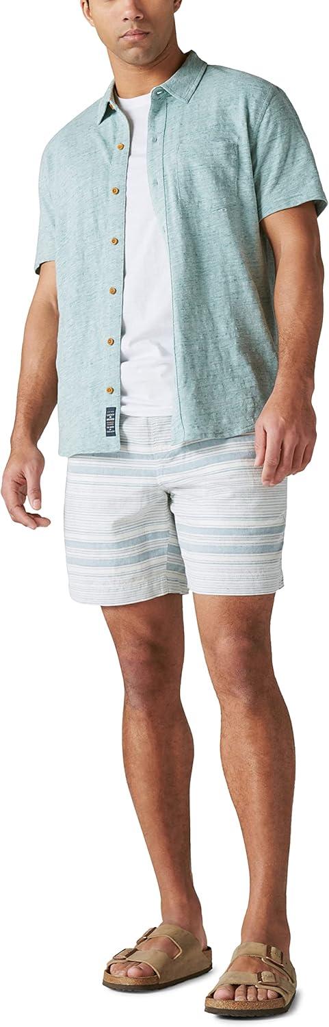 Lucky Brand Men’s 7″ Pull Up Linen Short(Blue Stripe)