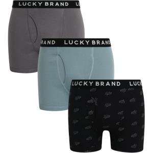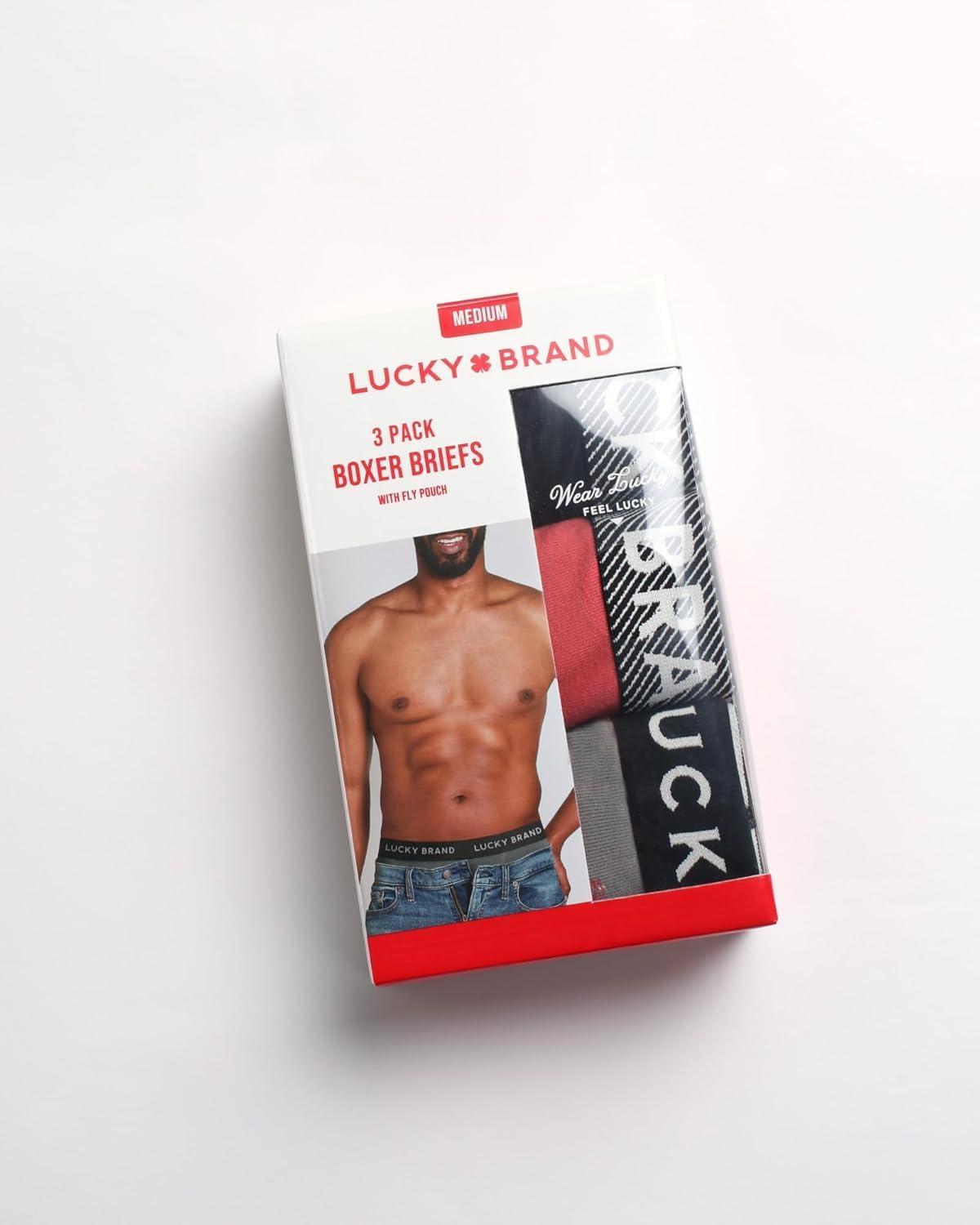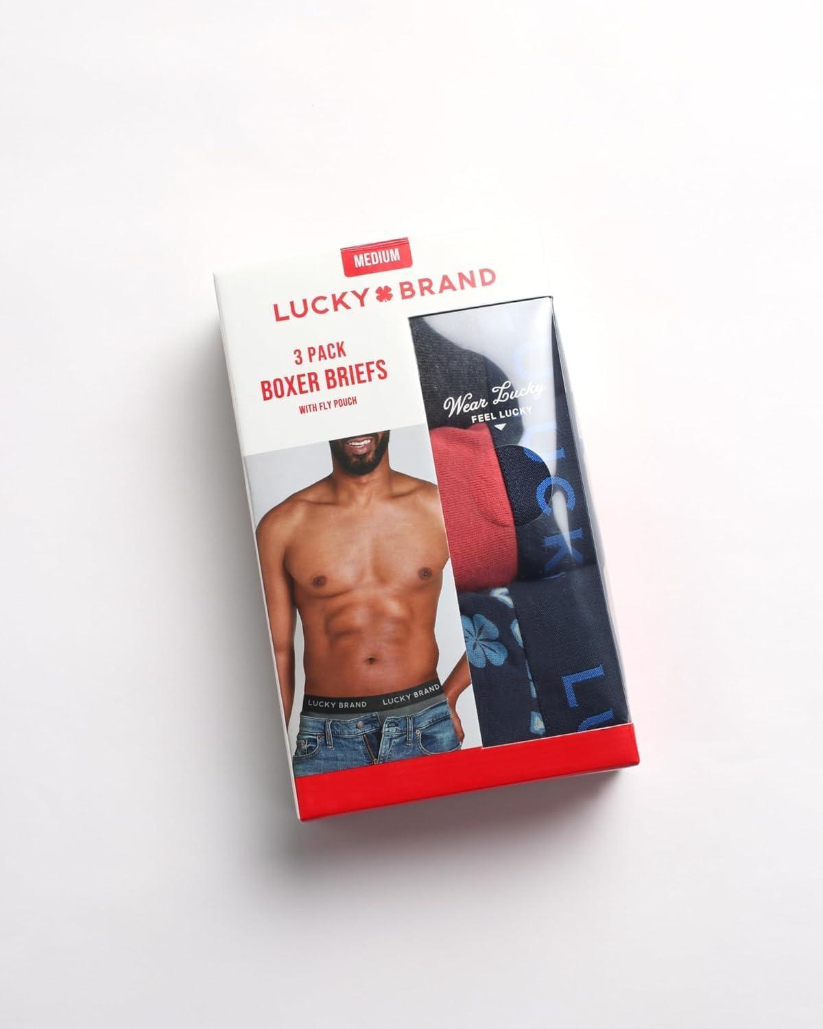 Score big on Lucky Brand Mens Boxer Briefs - 3 Pack Classic Mens Underwear Boxer Briefs with Functional Fly - Soft Cotton Boxers for Men(Jet Blackdecember Sky Printmineral Red) and accessories during our BOGO sale. Buy one, get one 50% off!