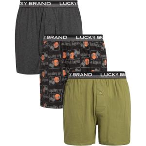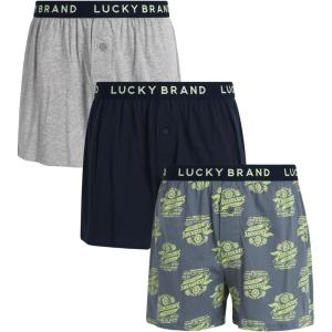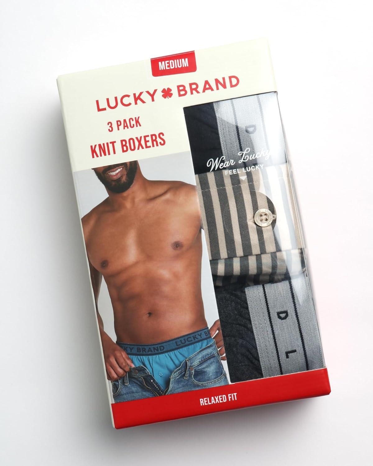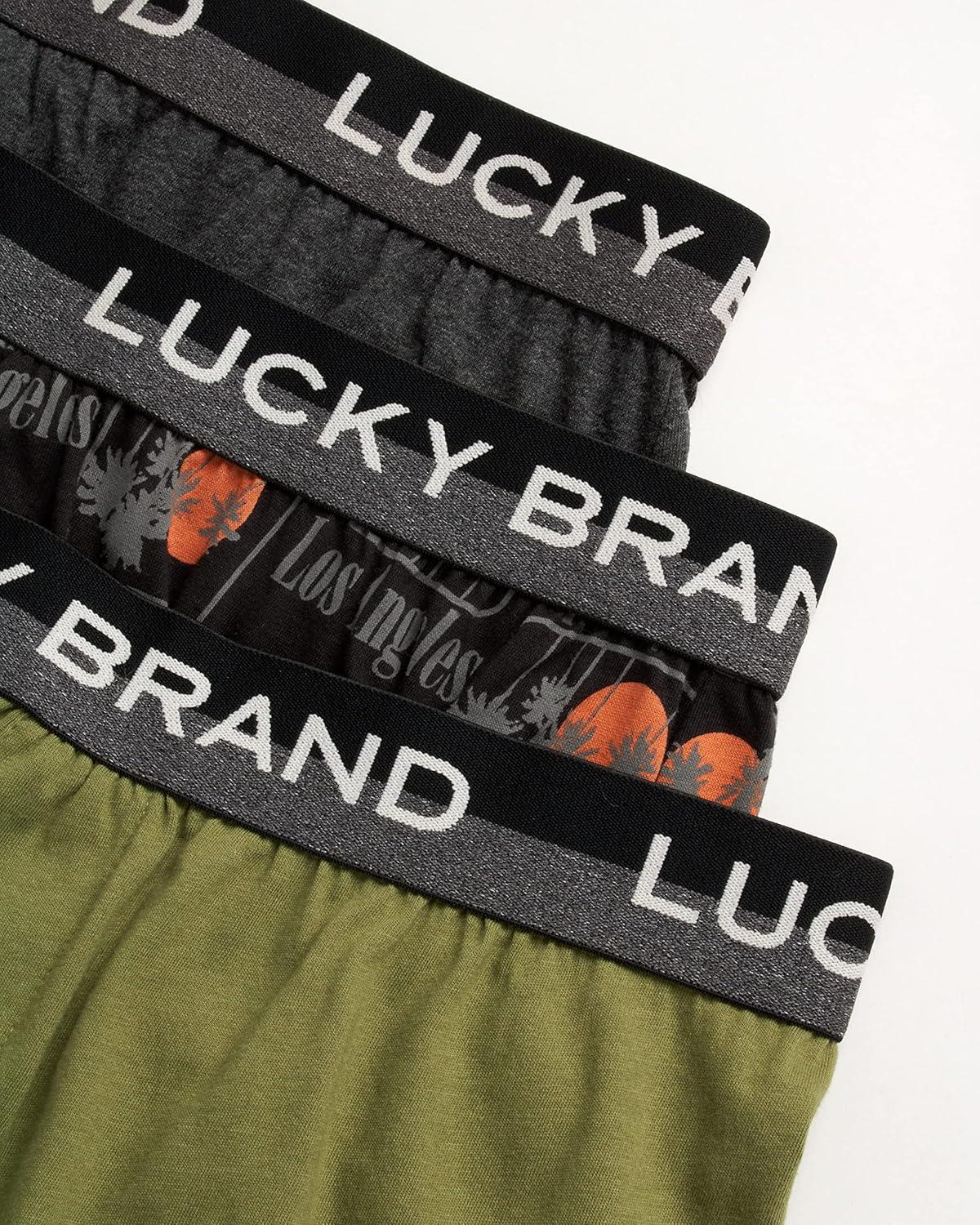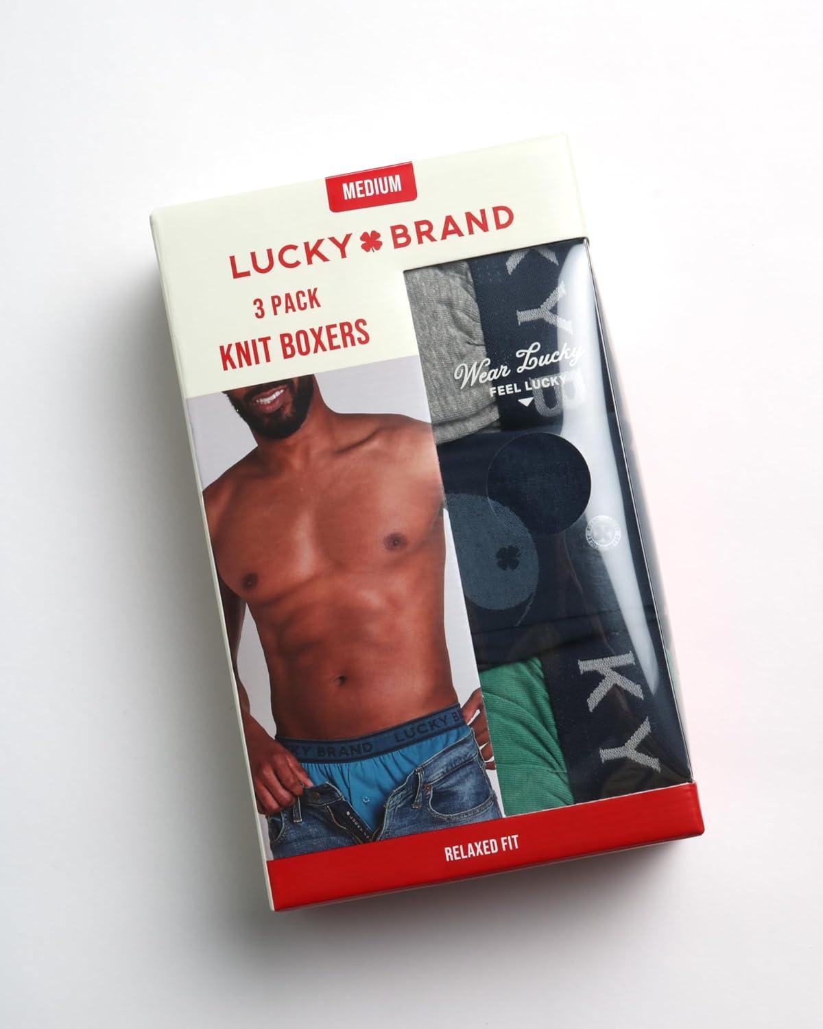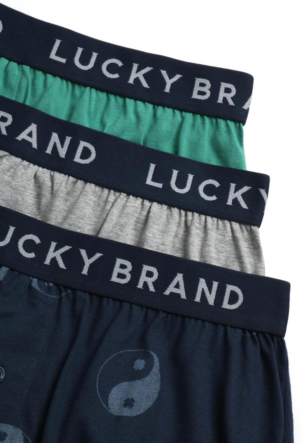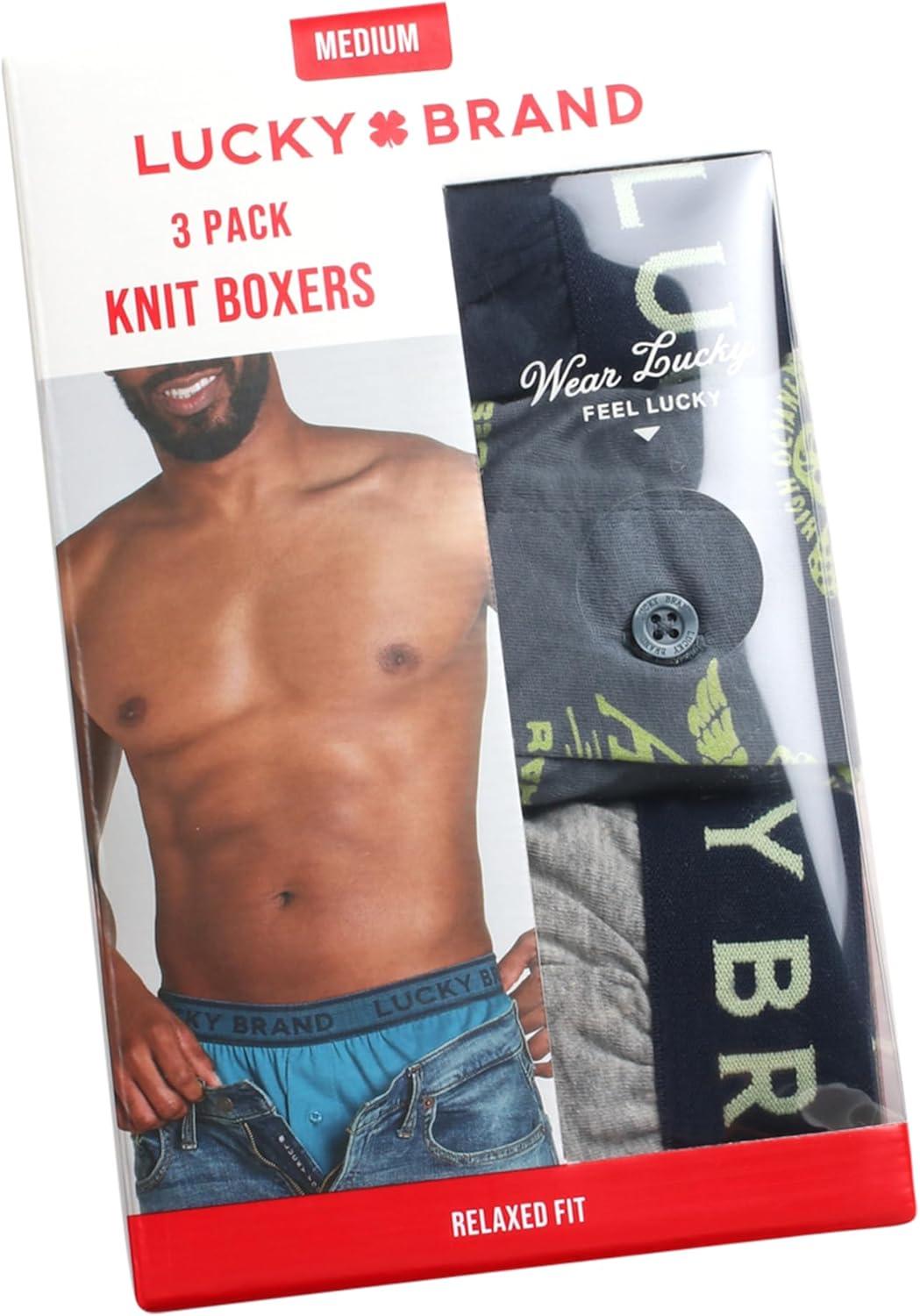 Save big on Lucky Brand Mens Boxer Shorts - 3 Pack Knit Cotton Boxers for Men with Functional Fly - Lightweight Mens Underwear Boxers(Heather Grey/Print/Bottle Green) and accessories during our BOGO sale. Buy one, get one 50% off!