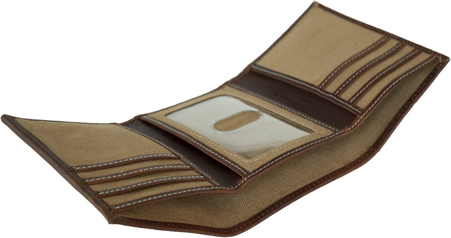 Lucky Brand Men’s Bifold Wallet | ID Window | Card Slots | Genuine Leather | Organization | Durable | Stylish(Canvas/Leather – Khaki)