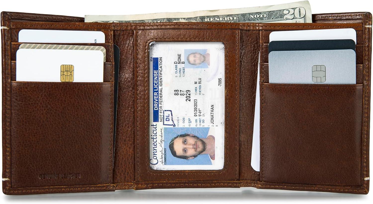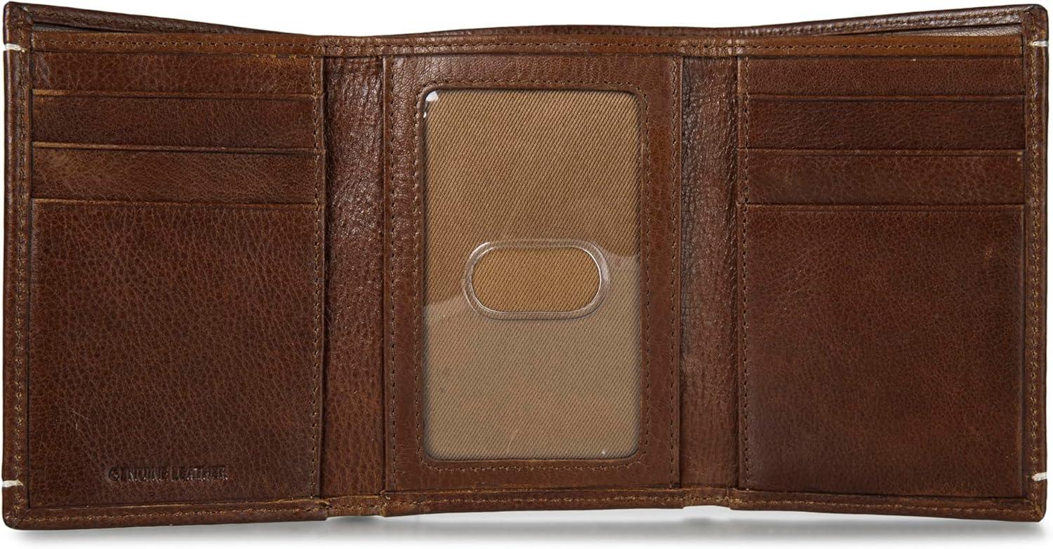Lucky Brand Men’s Trifold Wallet Id Window Card Slots Leather Organization Durable Stylish(Double Stitched – Brown)