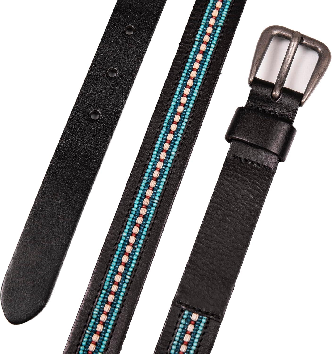 Lucky Brand Women’s Western-Inspired Leather Belt | Classic | American Heritage | Casual | Vintage | Cowboy(Turquoise Beaded – Black)