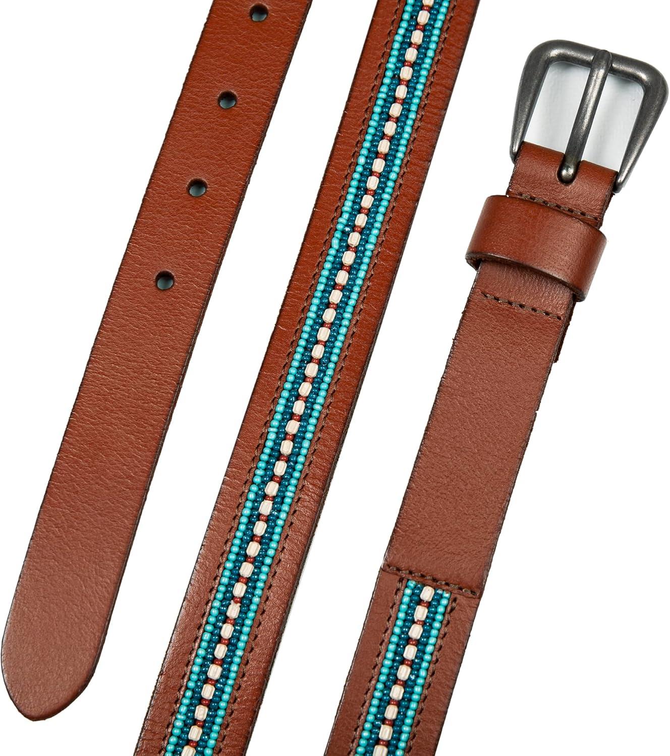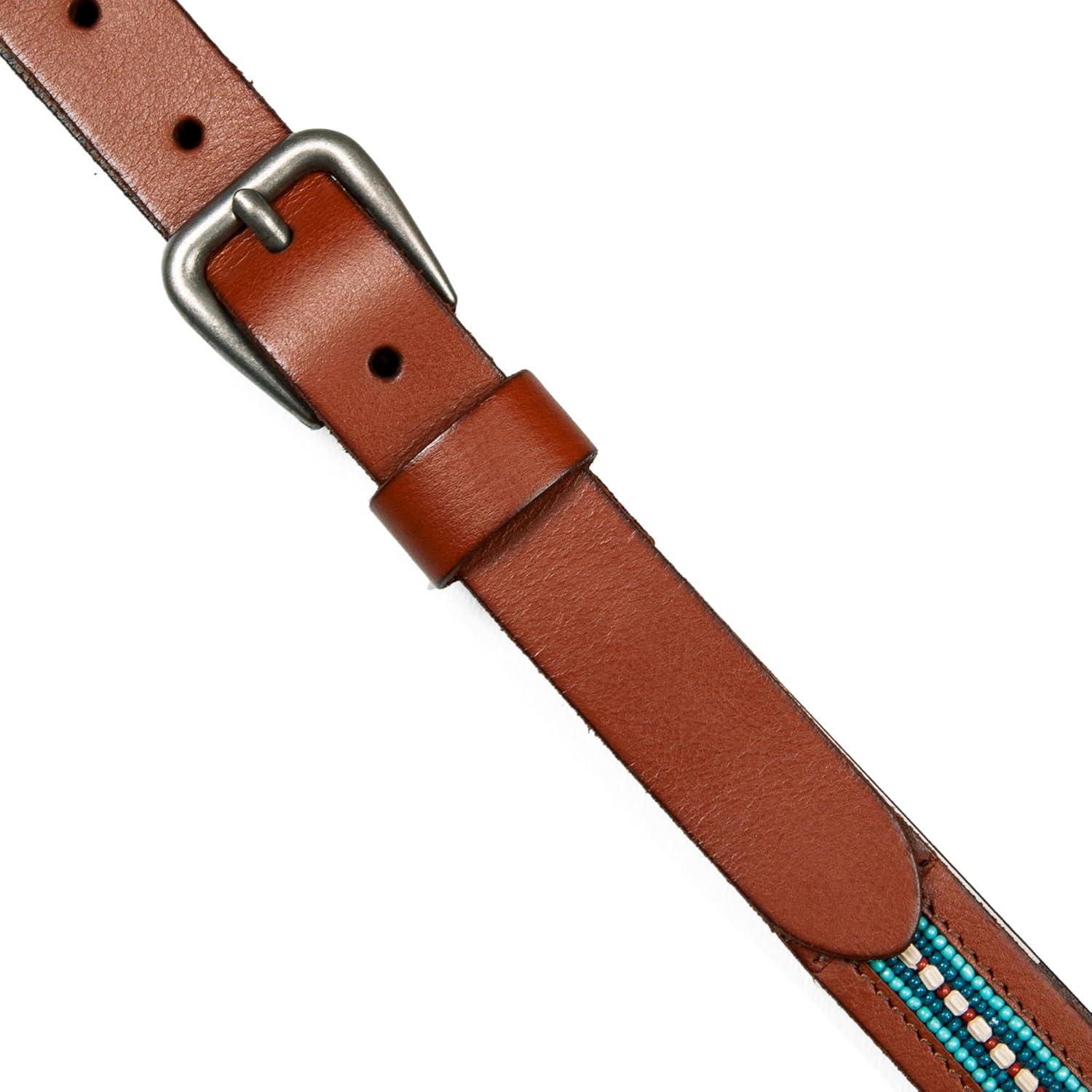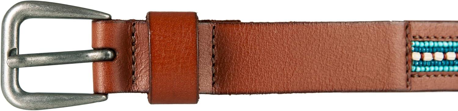 Lucky Brand Women’s Western-Inspired Leather Belt | Classic | American Heritage | Casual | Vintage | Cowboy(Turquoise Beaded – Tan)