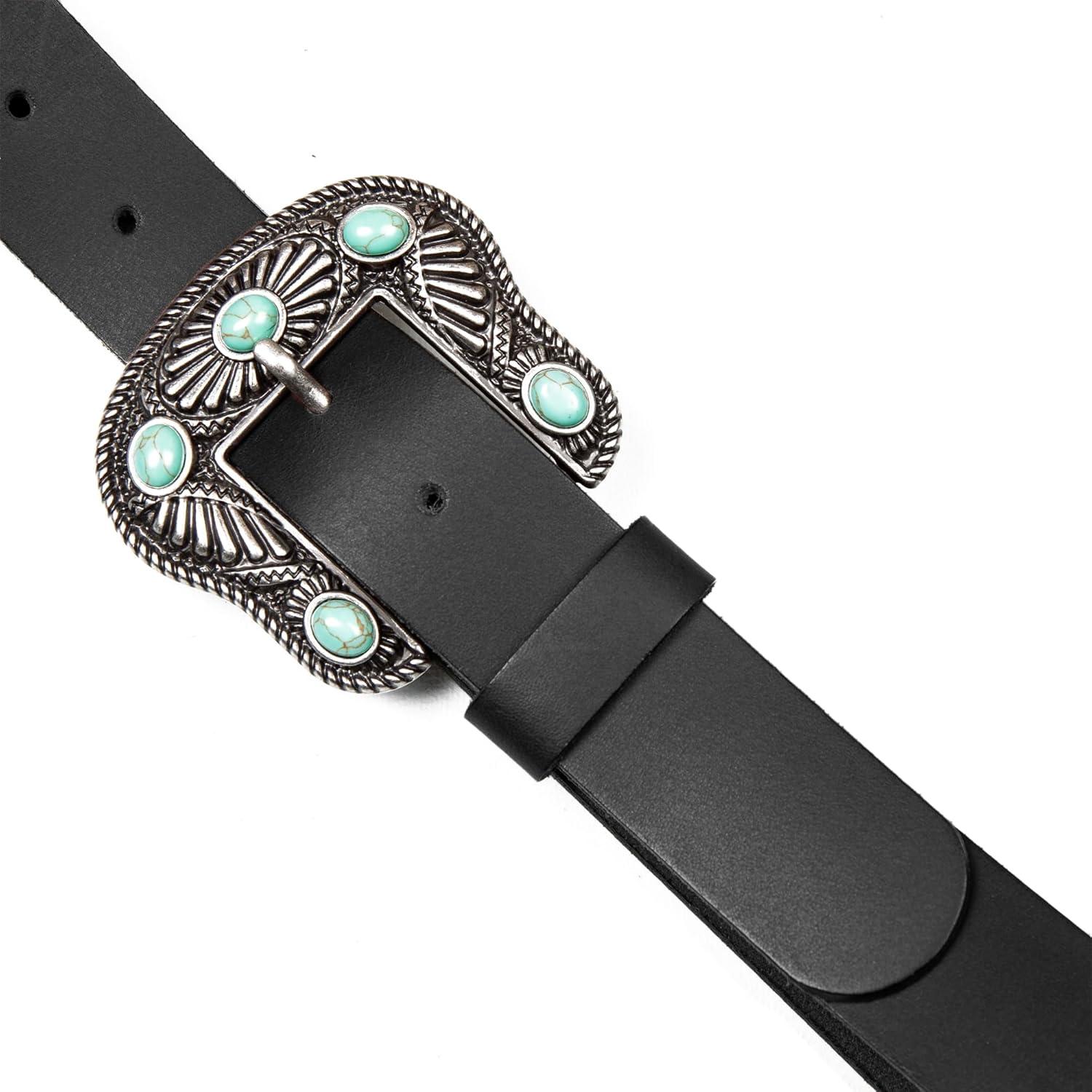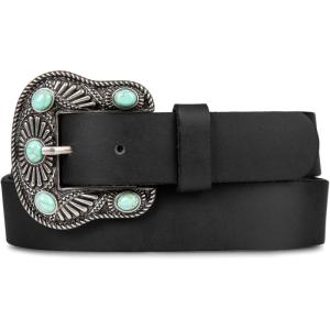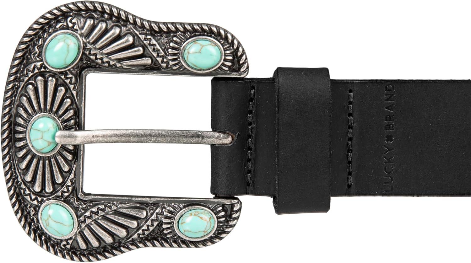 Lucky Brand Women’s Western-Inspired Leather Belt | Classic | American Heritage | Casual | Vintage | Cowboy(Turquoise Stud – Black)