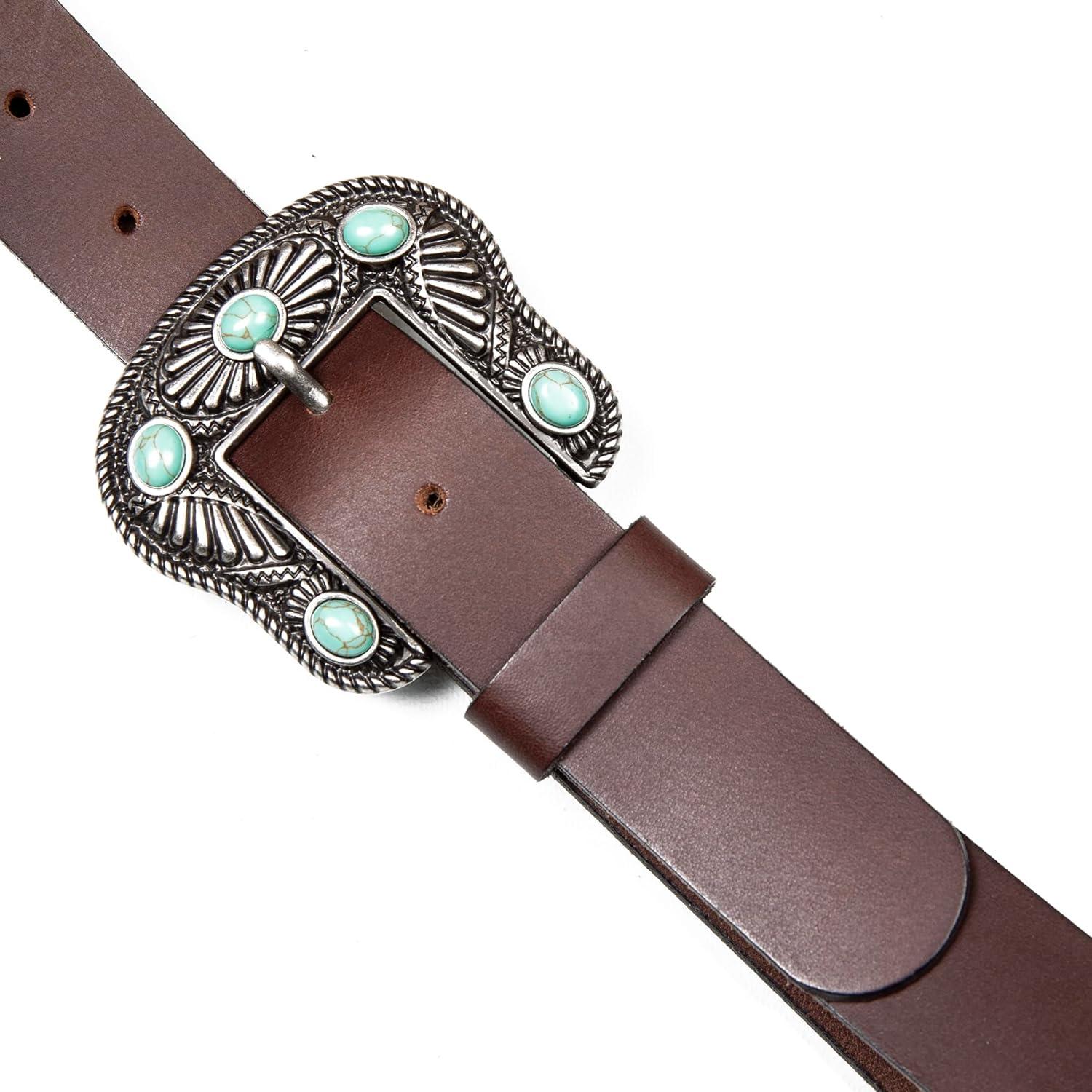 Lucky Brand Women’s Western-Inspired Leather Belt | Classic | American Heritage | Casual | Vintage | Cowboy(Turquoise Stud – Brown)