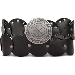 Lucky Brand Women’s Western-Inspired Leather Belt | Classic | American Heritage | Casual | Vintage | Cowboy(Grommet Concho – Black)