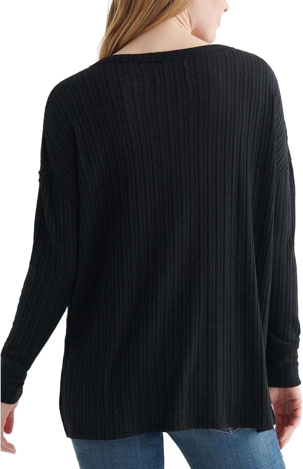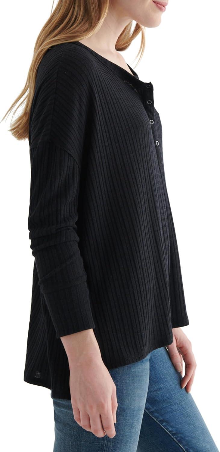 Lucky Brand Women’s Long Sleeve Rib Soft Henley Top(Jet Black)